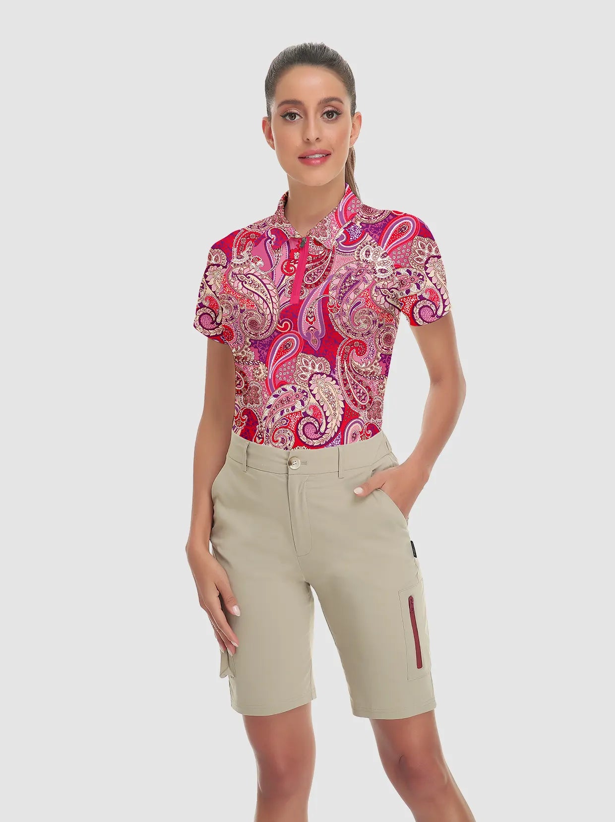 Stay cool and comfortable throughout your round with our breathable and stretchy fabrics, allowing you to swing with ease and confidence. Effortlessly pair them with our golf skorts to cute golf outfits for your game.
