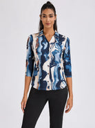 Marble Texture Prints V-Neck Button Down 3/4 Sleeve Shirt