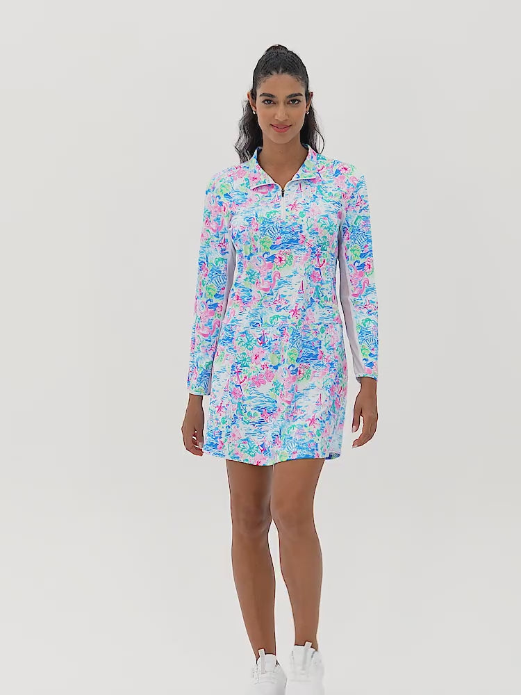 UPF50+ White Breathable Quarter-zip 34" Long-sleeve Dress with Shorts