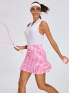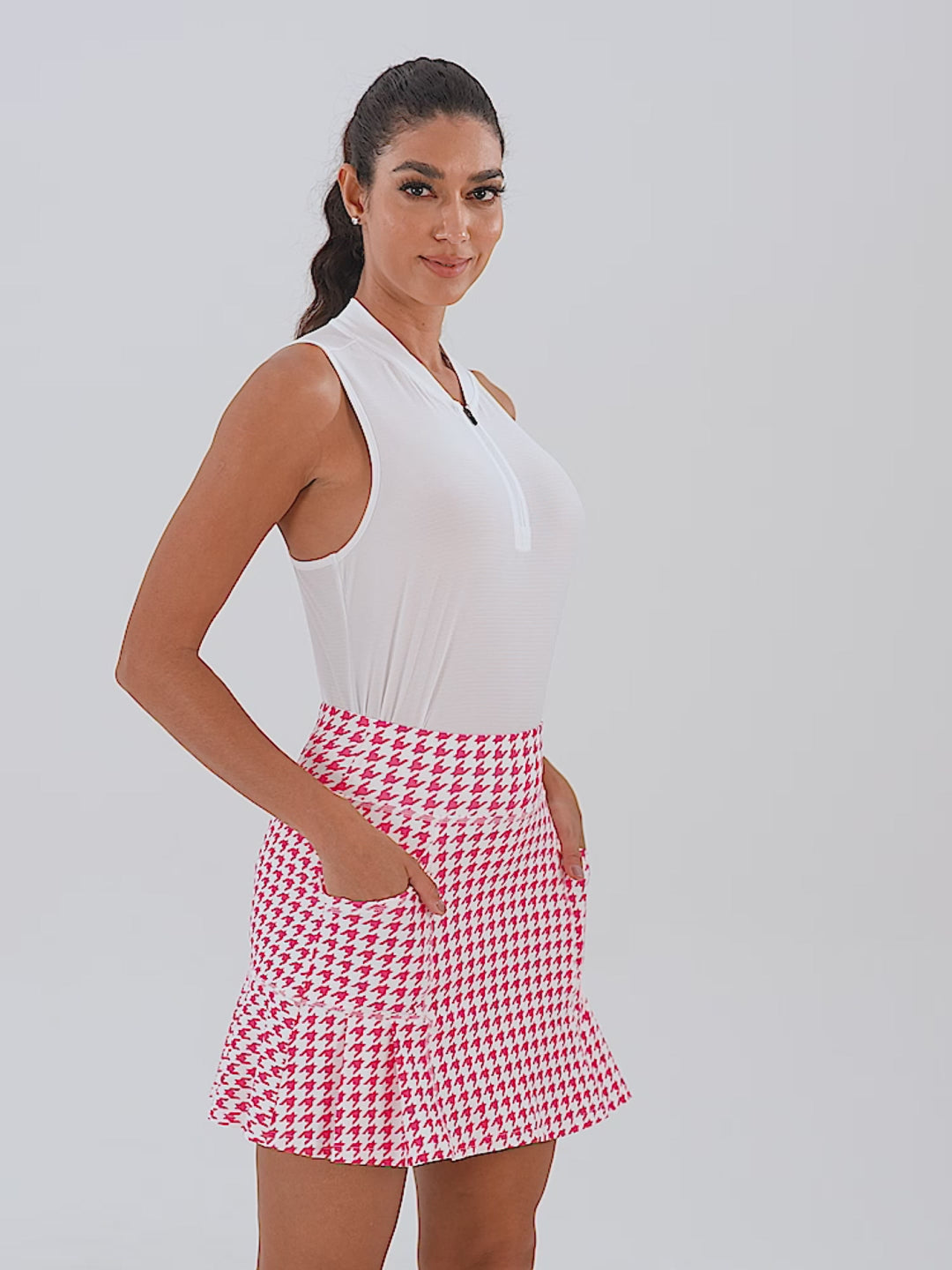 Ladies 17" Pink Houndstooth Pleated Skort with Shorts and Pockets