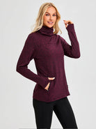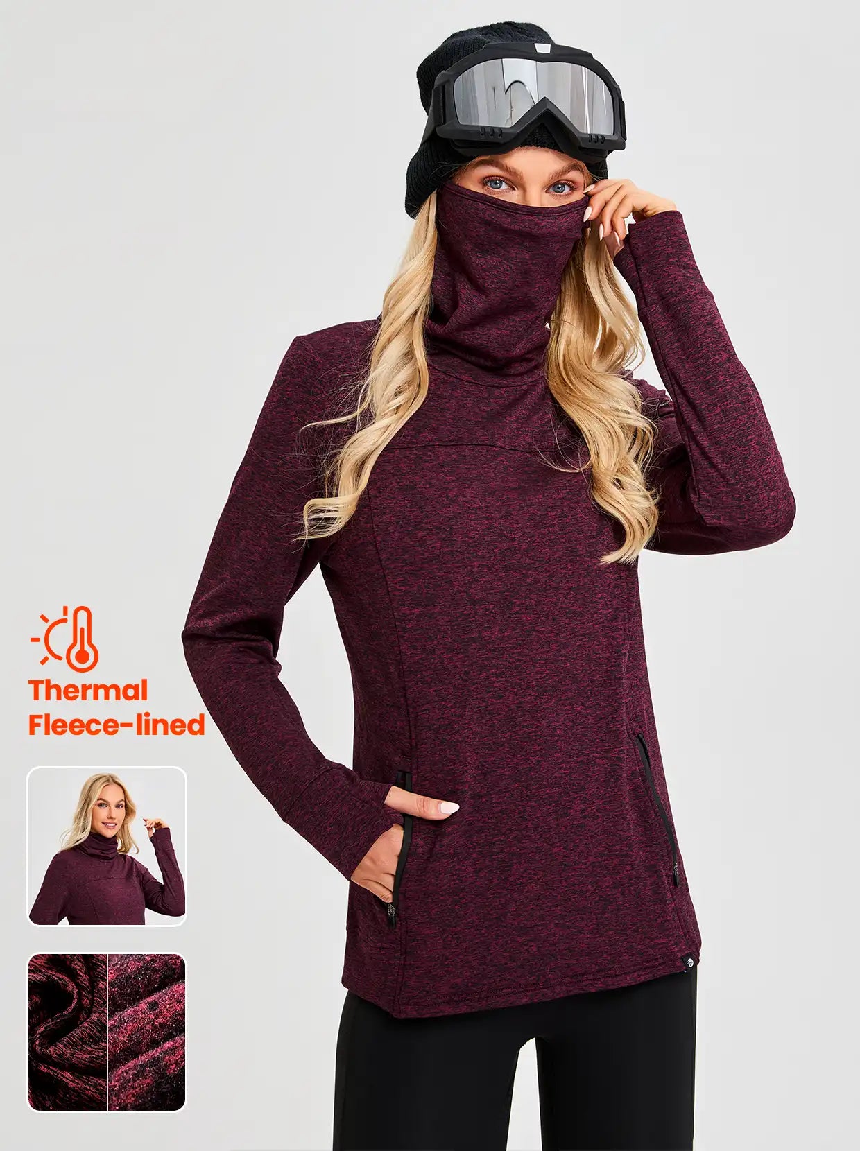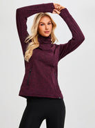 Stay snug and stylish in our functional cowl neck fleece pullover.