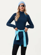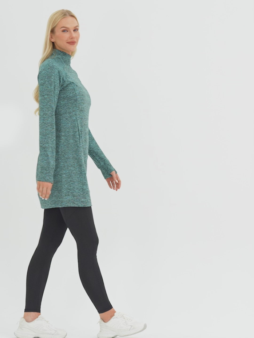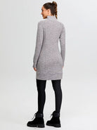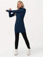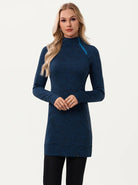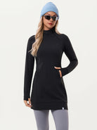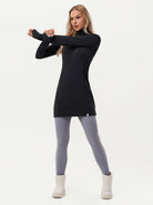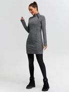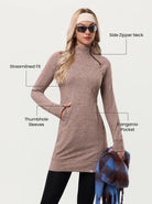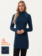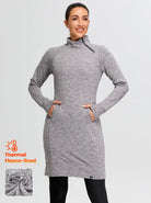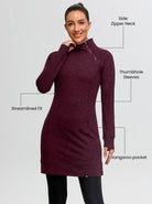 Side-zip 35" Mock Neck Long-sleeve Fleece Dress for Women