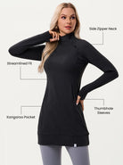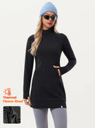 Enjoy your time outdoors! The fleece dress features soft fabric and fleece lining, keeping your body warm and comfortable all day. The mock neck and side zipper design offer an added cover for the neck, and the stretchy material provides great freedom outdoors. Thumb holes ensure the sleeves stay securely in place, preventing any unwanted movement during exercises. The solid color and classic design make it easy to pair with, a good ideal for daily wear or exercise.