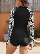 Black Patchwork Print Zip Raglan sleeve Rash Guard
