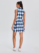 Get ready to tee off in style with our Checkerboard Zipper Golf Dress with Shorts! Made from 4-way stretchy material, this dress features a playful checkerboard pattern that will make you stand out on the course. With UPF50+ protection, an active fit, and a quarter-zip collar, you'll stay comfortable and protected while playing golf, tennis, pickleball, or simply going about your day. Available in blue and white, this dress is perfect for those who want to keep it quirky and fun on and off the course.