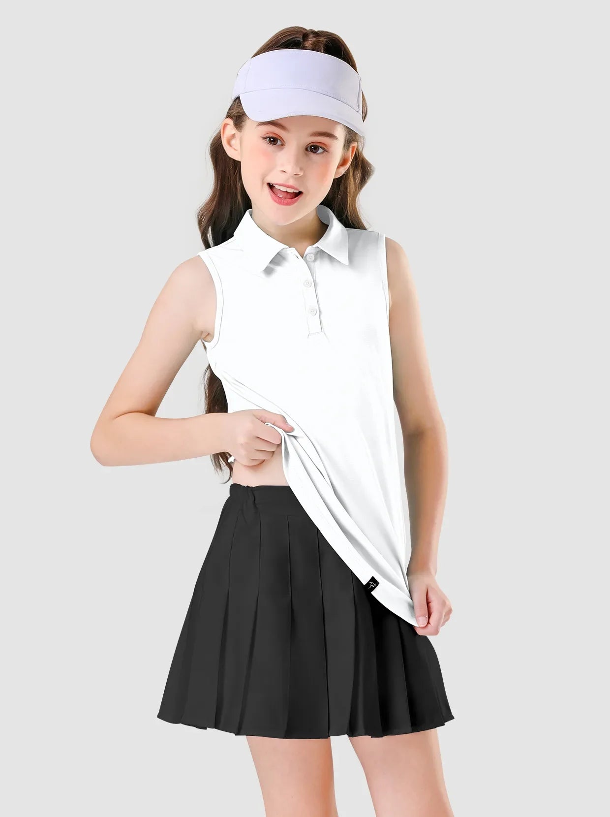 Girls Solid Color Button-placket Sleevless Polo Shirt