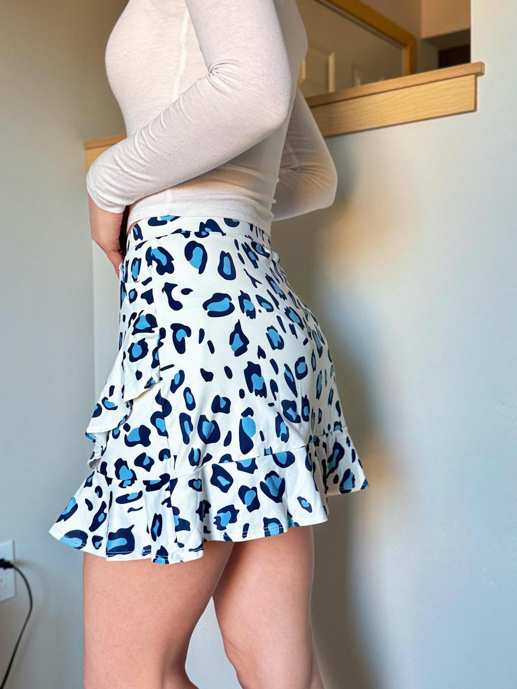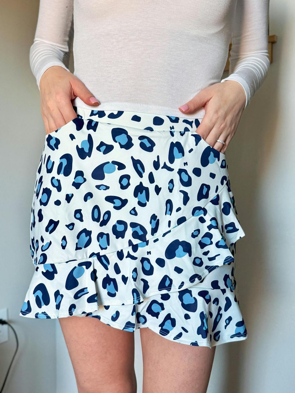 Unleash your inner wild! This ruffled leopard print skirt is stylish and high-performance. Quick-drying, four-way stretch fabric moves with you, while sun protection and built-in shorts keep you cool and confident. Wear it in comfort while hitting the course or exercising outdoors. Buy now and embrace your wild side!