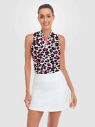 Pink Leopard Quarter-zip Racerback Sleeveless Shirt For Women