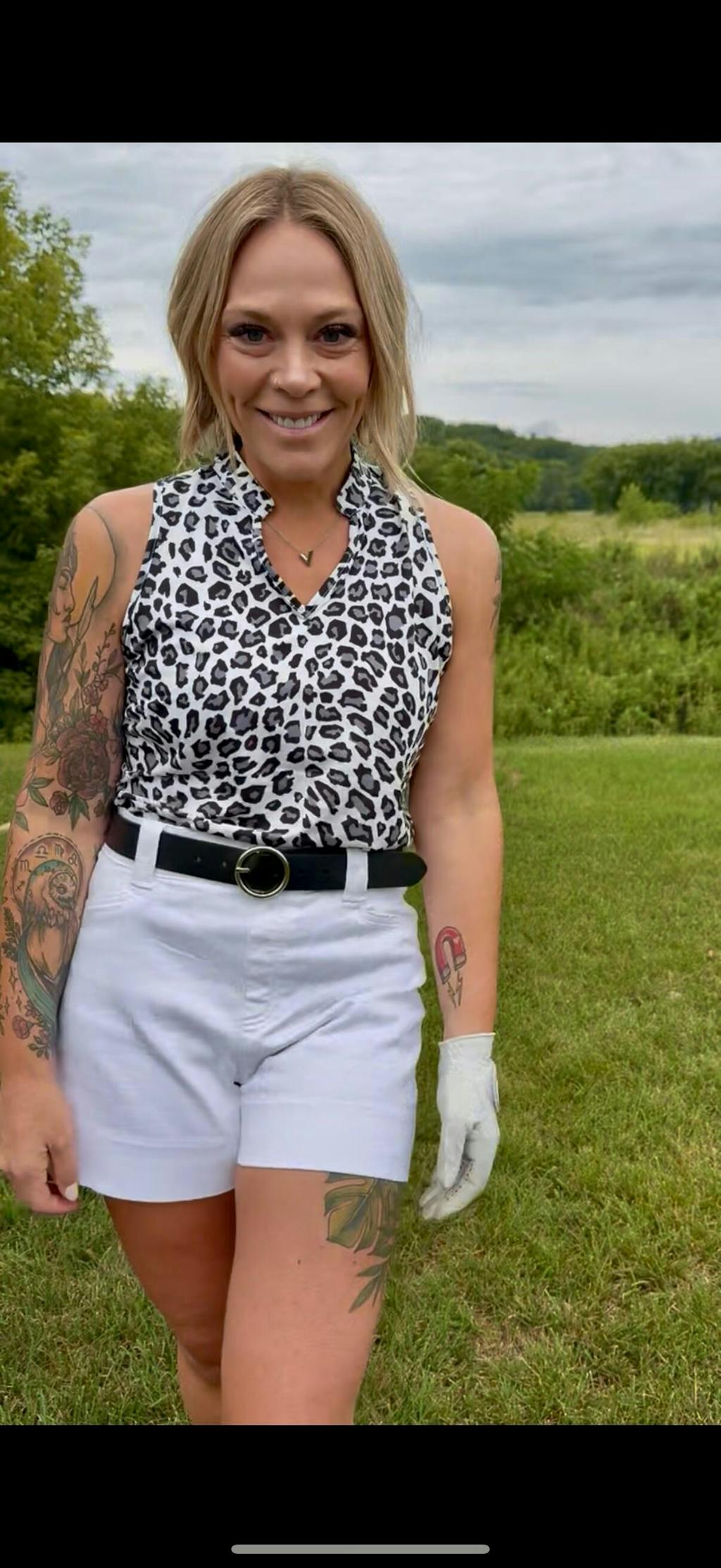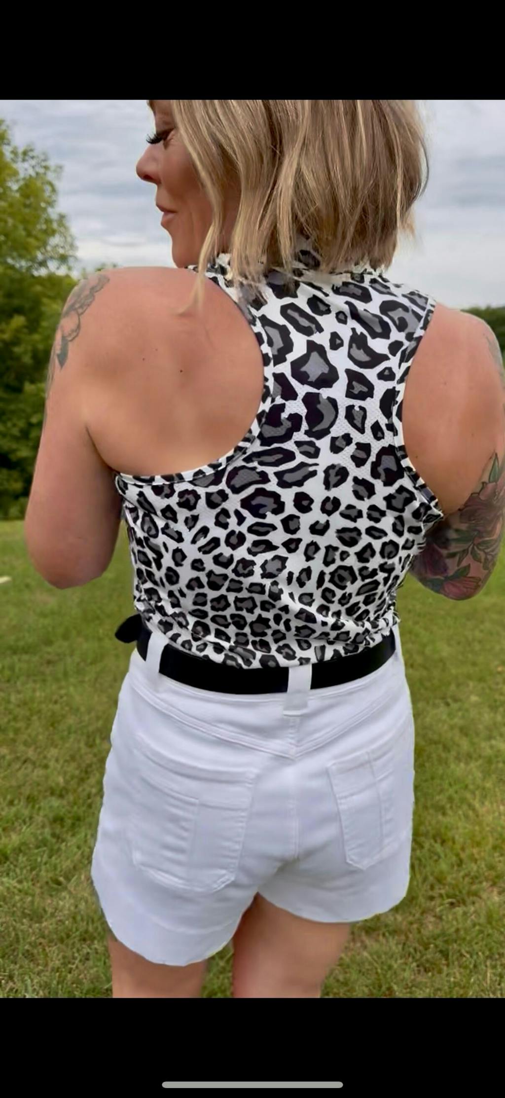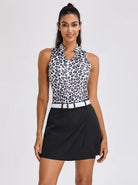Black and Gray Leopard Print V-neck Racerback Sleeveless Golf Shirt
