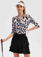 Leopard Print 3/4 Sleeve Button Down Golf Shirt