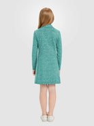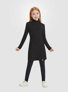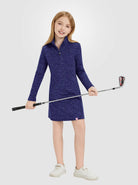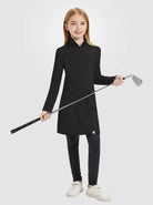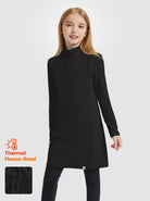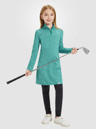 Stay warm, stylish, and protected in our Girls Quartet-zip Long-sleeve Fleece Dresses! The UPF50+ material blocks harmful UVA/UVB rays, while the 4-way stretch provides an active fit for all their outdoor adventures. With a quarter-zip and stand collar, it's easy to adjust for changing temperatures, and the side pockets add convenience for storing essentials. Made with a soft and lightweight fabric, it's perfect for daily wear or outdoor activities. For girls aged 6-14 years, this dress is a must-have addition to their wardrobe.