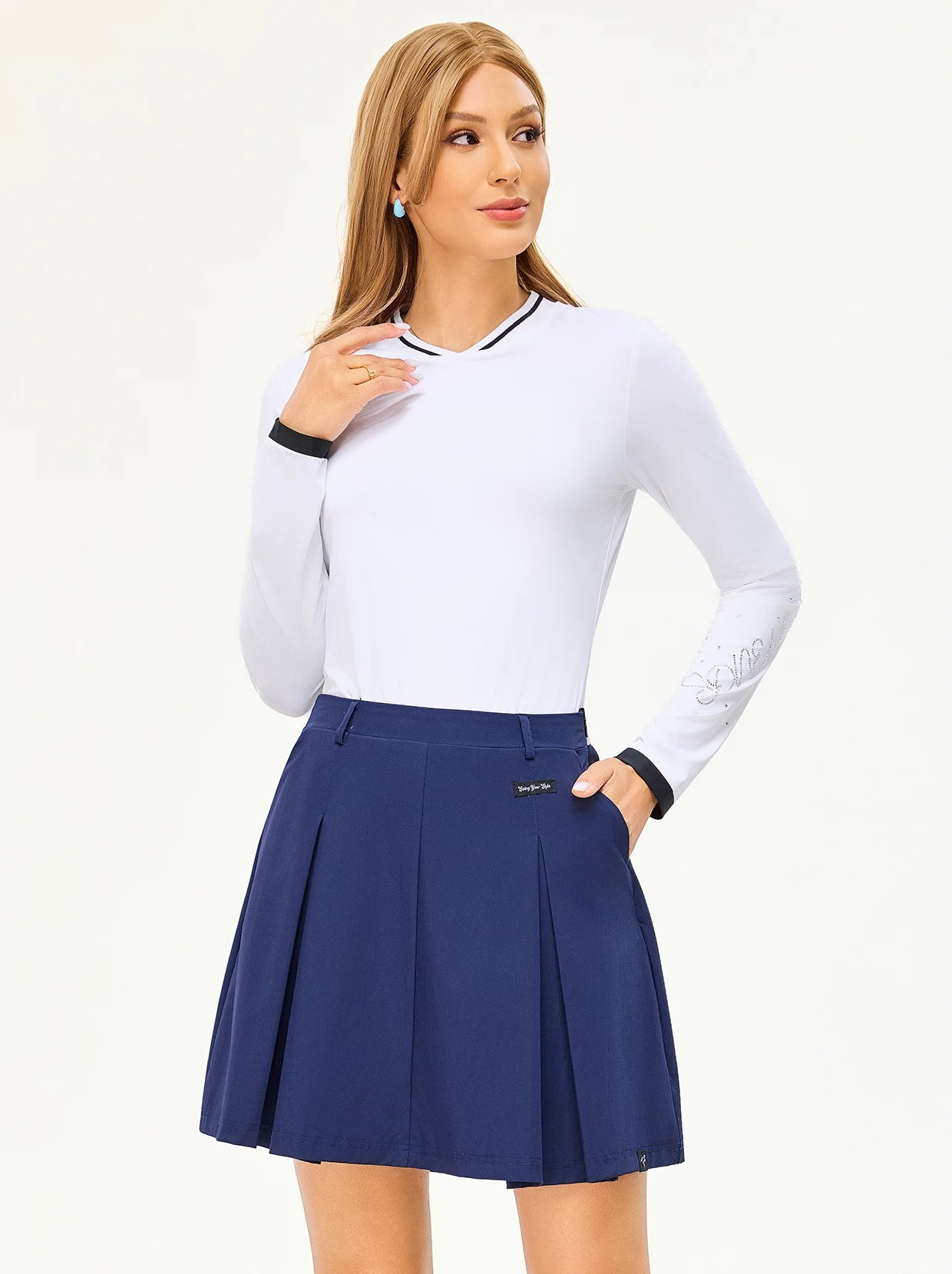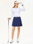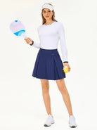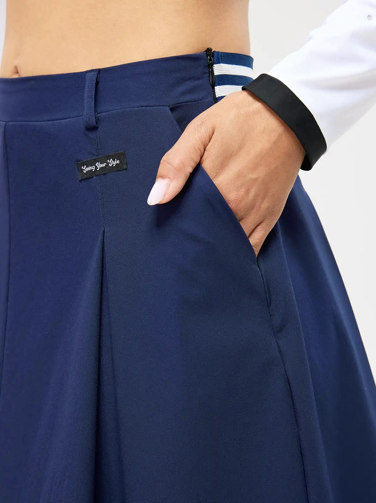 Water-repellent Navy 17" Pleated Golf Skorts with Shorts and Pockets