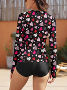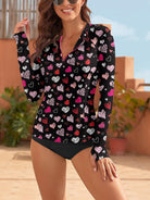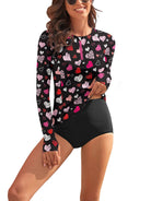 Heart Print Quarter-zip Long-sleeve Rash Guard
