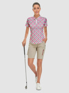 Pink Checkerboard Short-sleeve Golf Shirt for Women