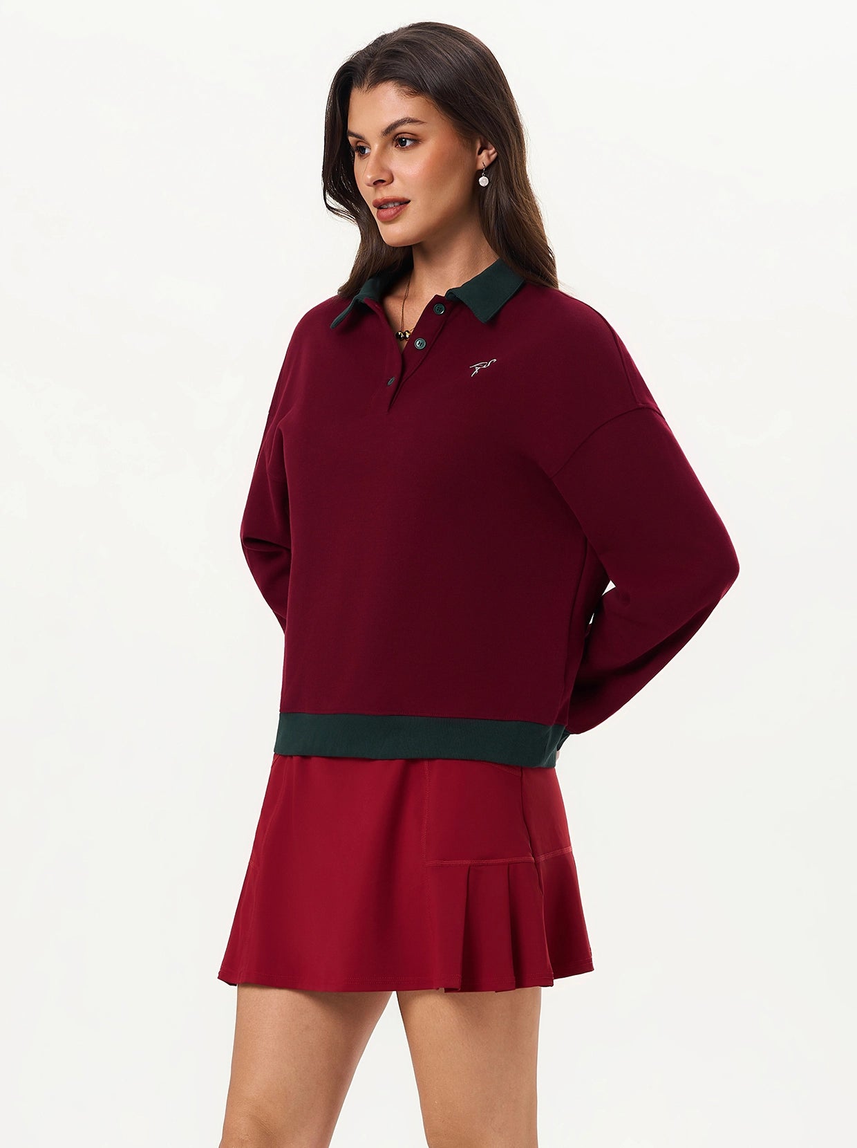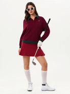 Cozy Red Button-placket Golf Sweatshirt (SHIP IN 12 DAYS)