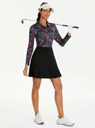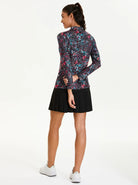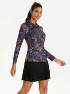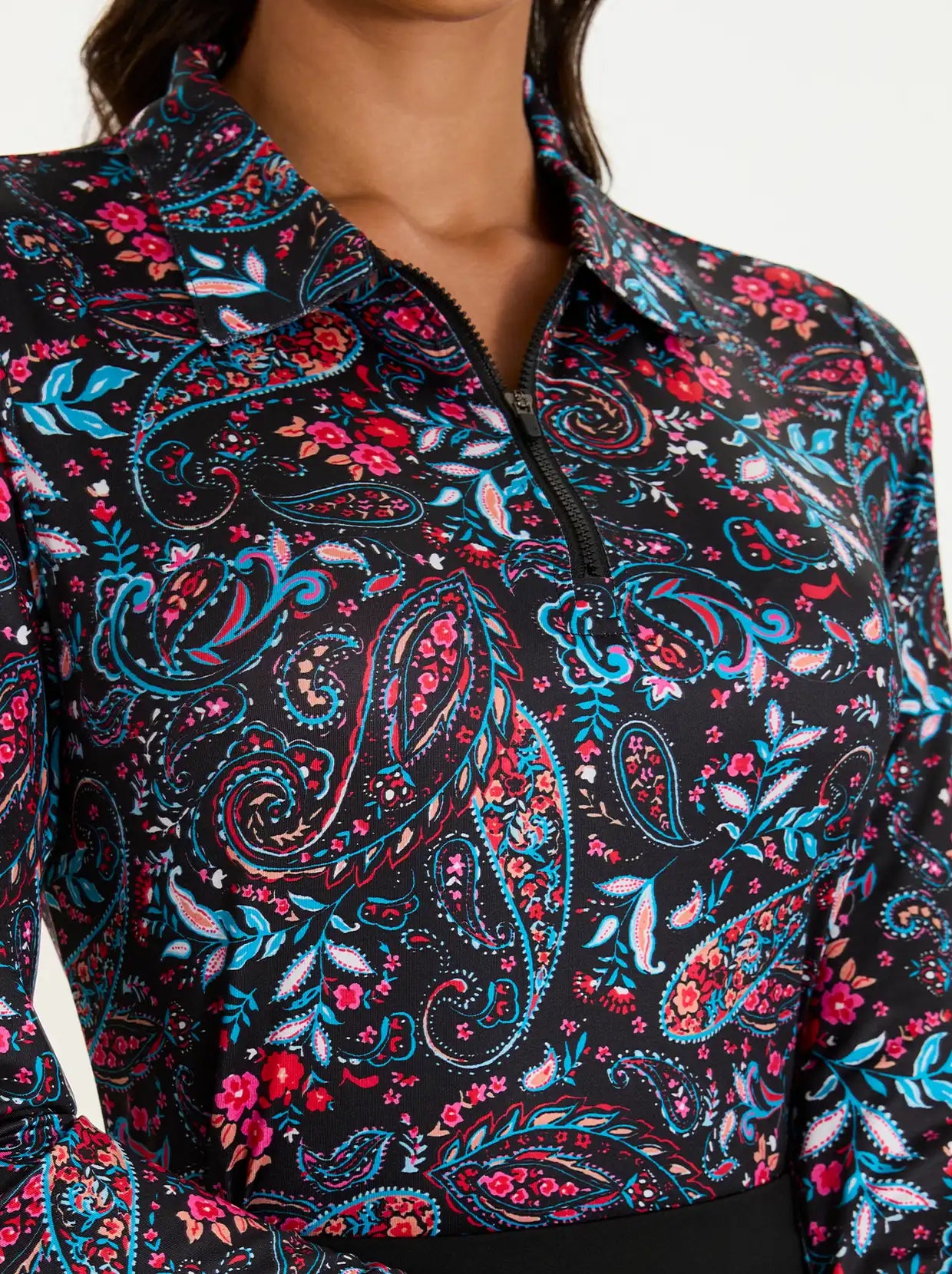 Black Paisley Quarter-zip Long-sleeve Polo Shirt for Women