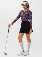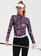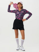 Enjoy the fun of sports with our black retro floral polo shirt. Featuring a breathable, quick-dry fabric that wicks away moisture, you'll stay cool and comfortable on the court. The classic polo with a stand collar and self-lock half zip offers added versatility.