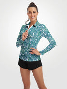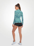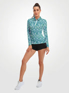Green Paisley Quarter-zip Long-sleeve Polo Shirt for Women