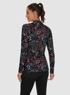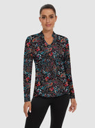 Black Paisley Stand V-Collar Long-sleeve Golf Polo for Women