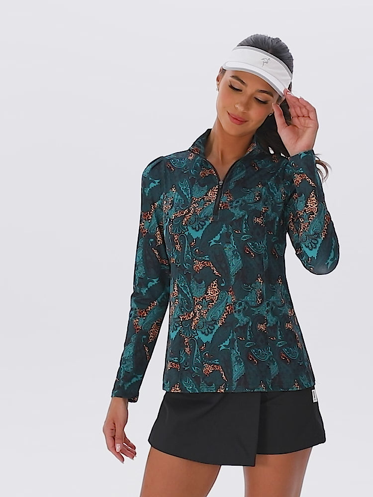 Green Paisley Quarter-zip Long-sleeve Shirt for Women