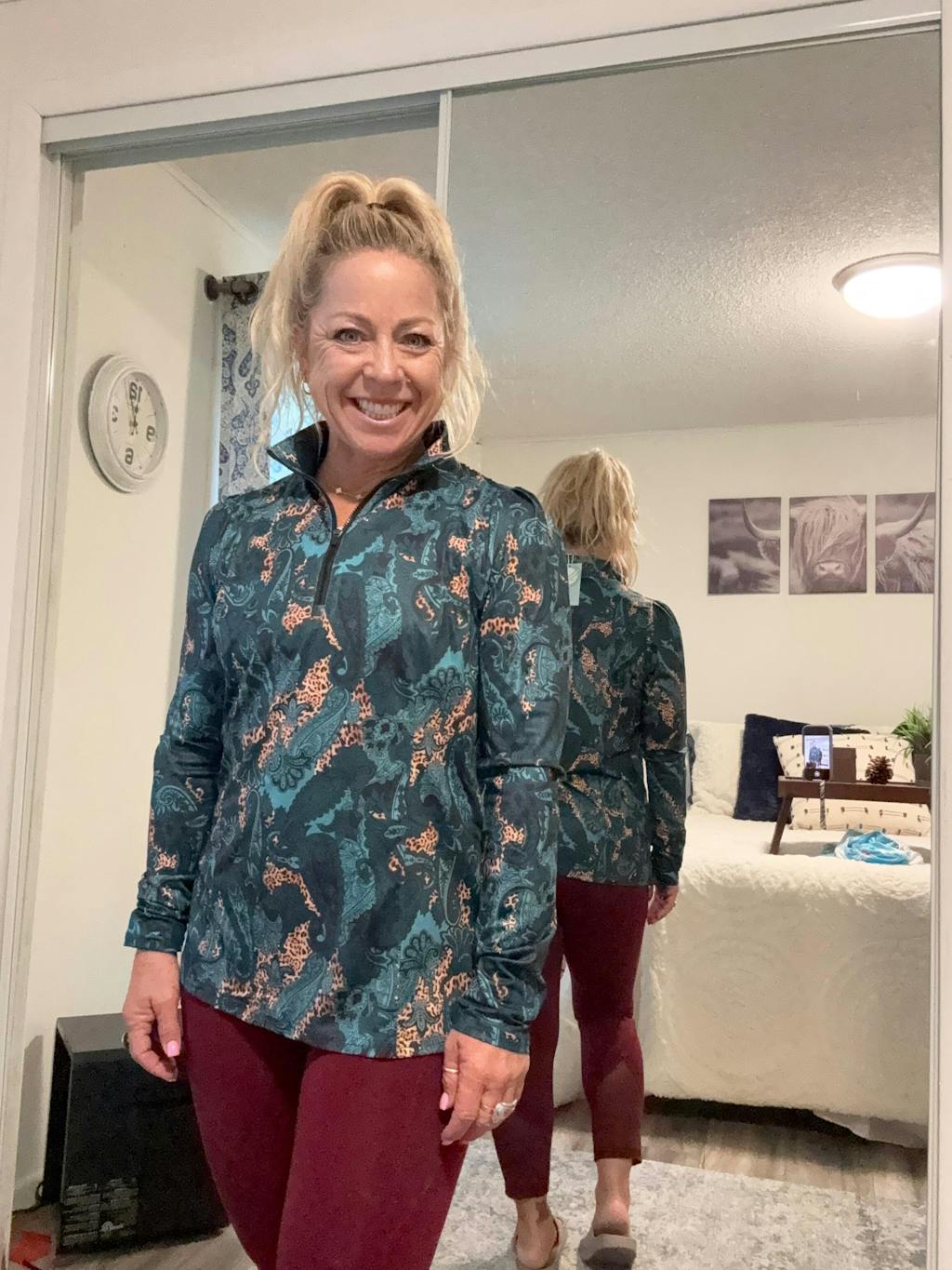 Green Paisley Quarter-zip Long-sleeve Polo Shirt
