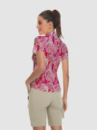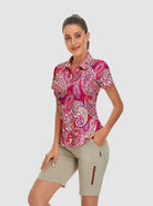 Purple Paisley Quarter-zip Short-sleeve Golf Polo for Ladies