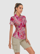 Shop our Ladies' Short Sleeve Golf Polo - Purple Print Golfer's Moisture Wicking Athletic Golf Lapel Quarter Zipper Polo Shirt Tennis Shirt Dry Fit.