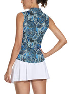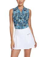 Soneven Ladies Golf Sleeveless Polo-????SO? Blue Vintage Print Athletic Polo Shirts Moisture Wicking Tennis Shirts Golf Shirt