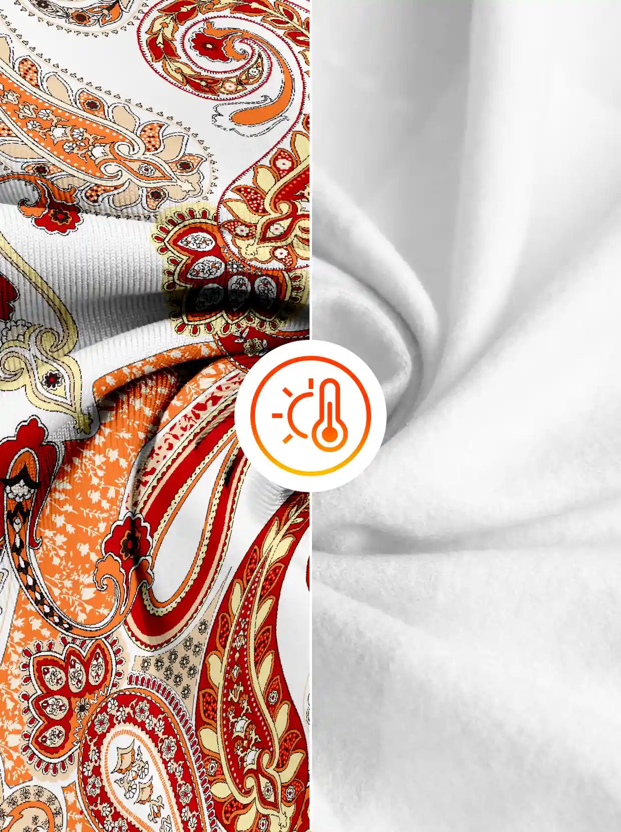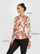 Gold Paisley V-Neck Long-sleeve Fleece Top for Women