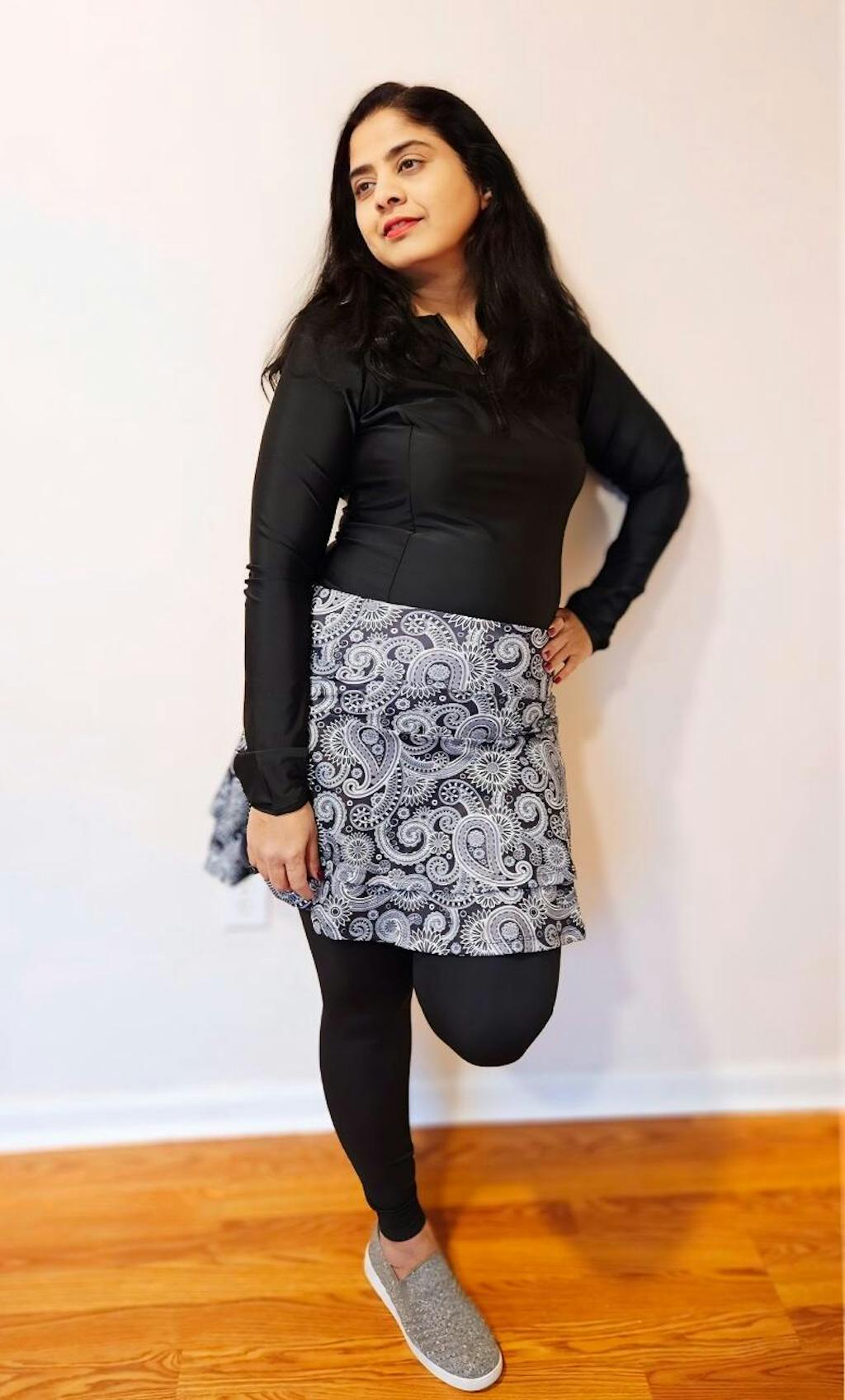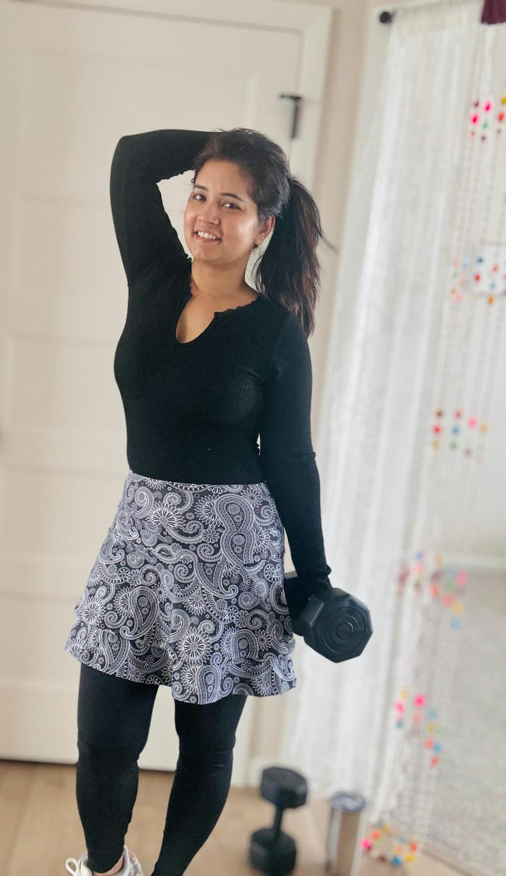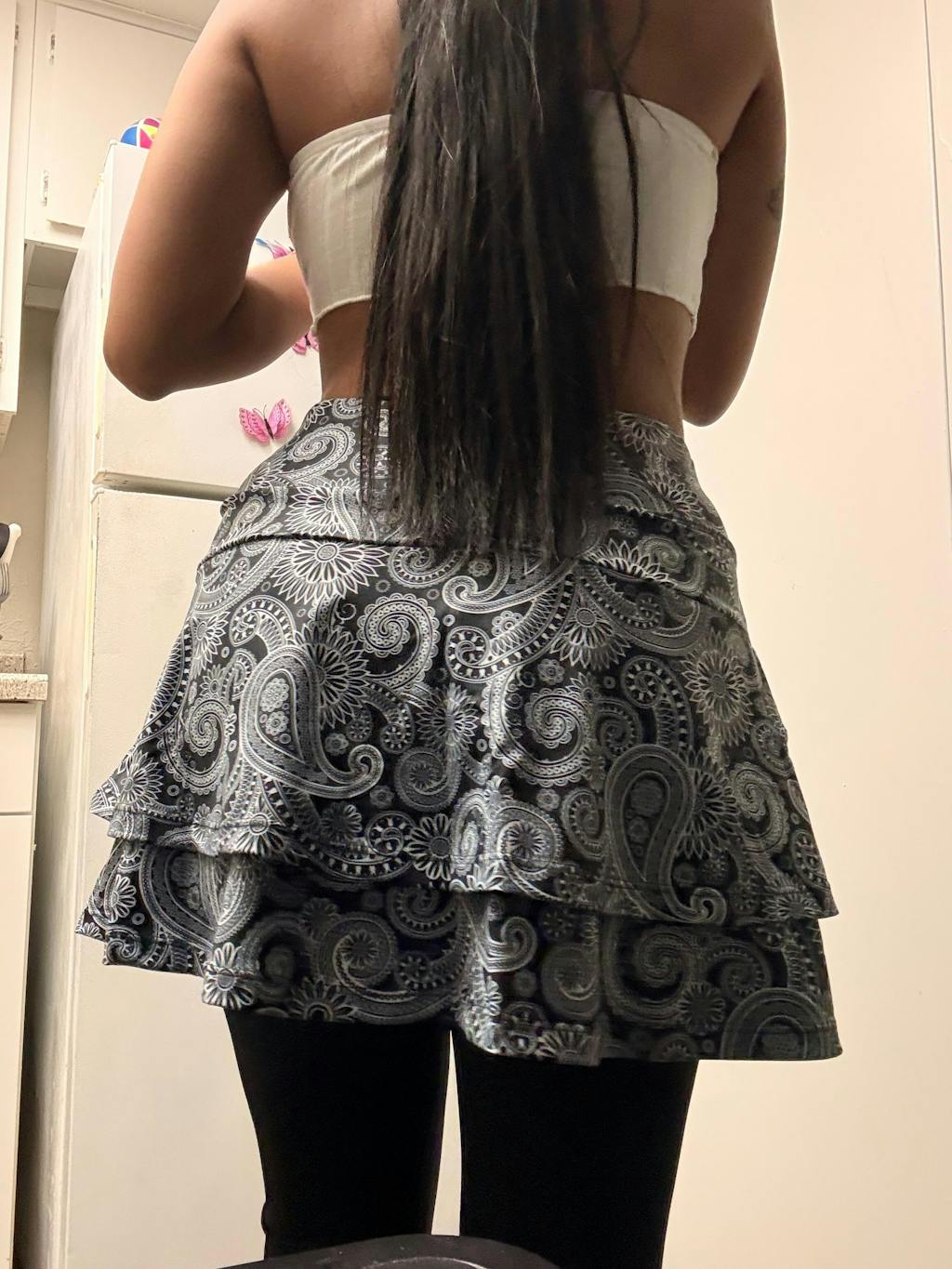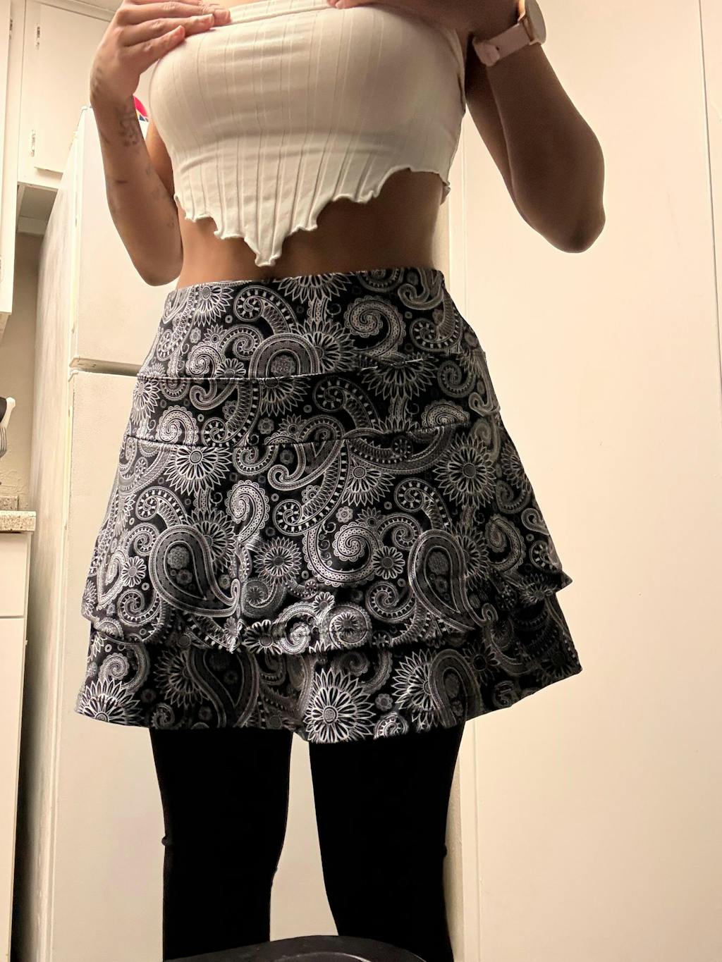 Stay active and stylish with our white paisley double-layer ruffled athletic skirted leggings. Designed for comfort and performance, these leggings feature soft, stretchy fabric with 4-way stretch for unrestricted movement. The double-layer design and long leggings offer extra coverage, while the side pockets keep your essentials close. The wide, flat waistband provides a secure, comfortable fit, making these leggings perfect for sports.