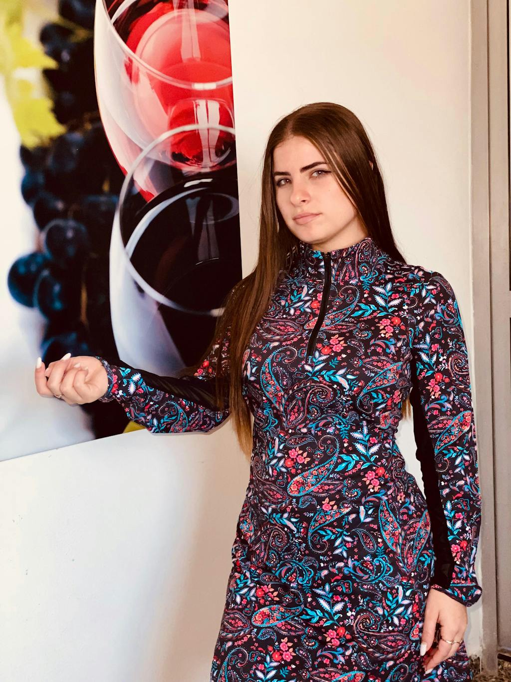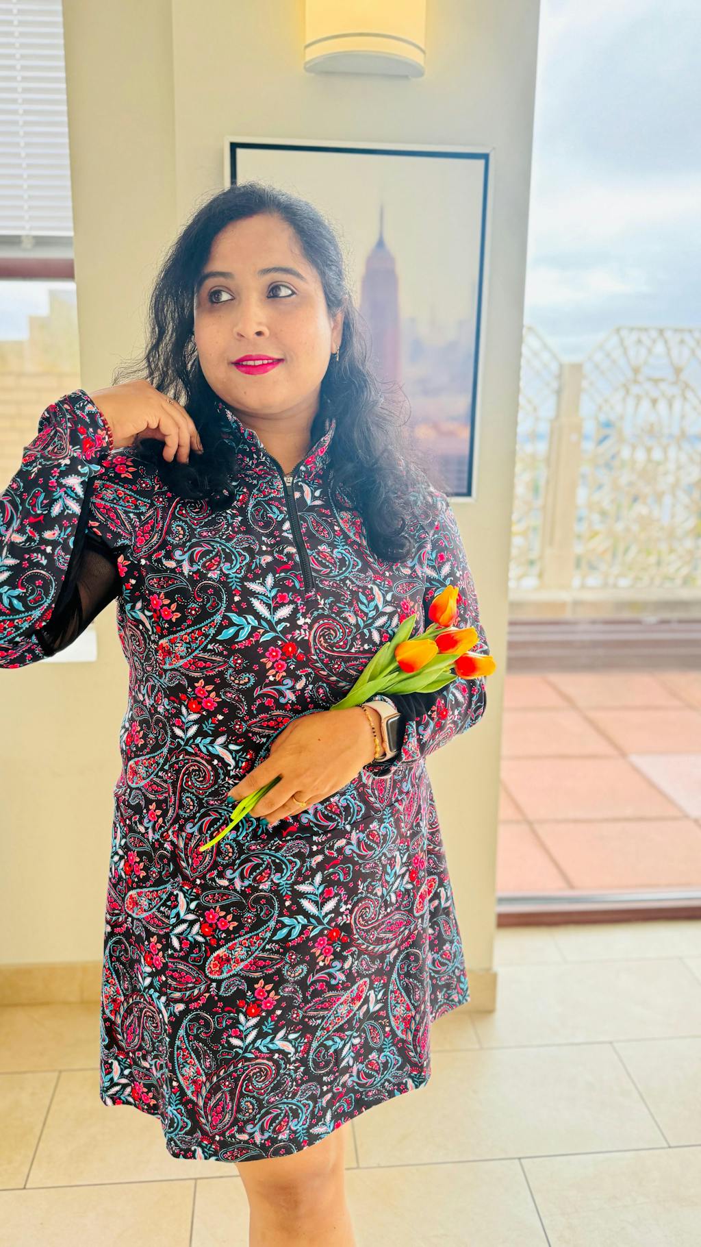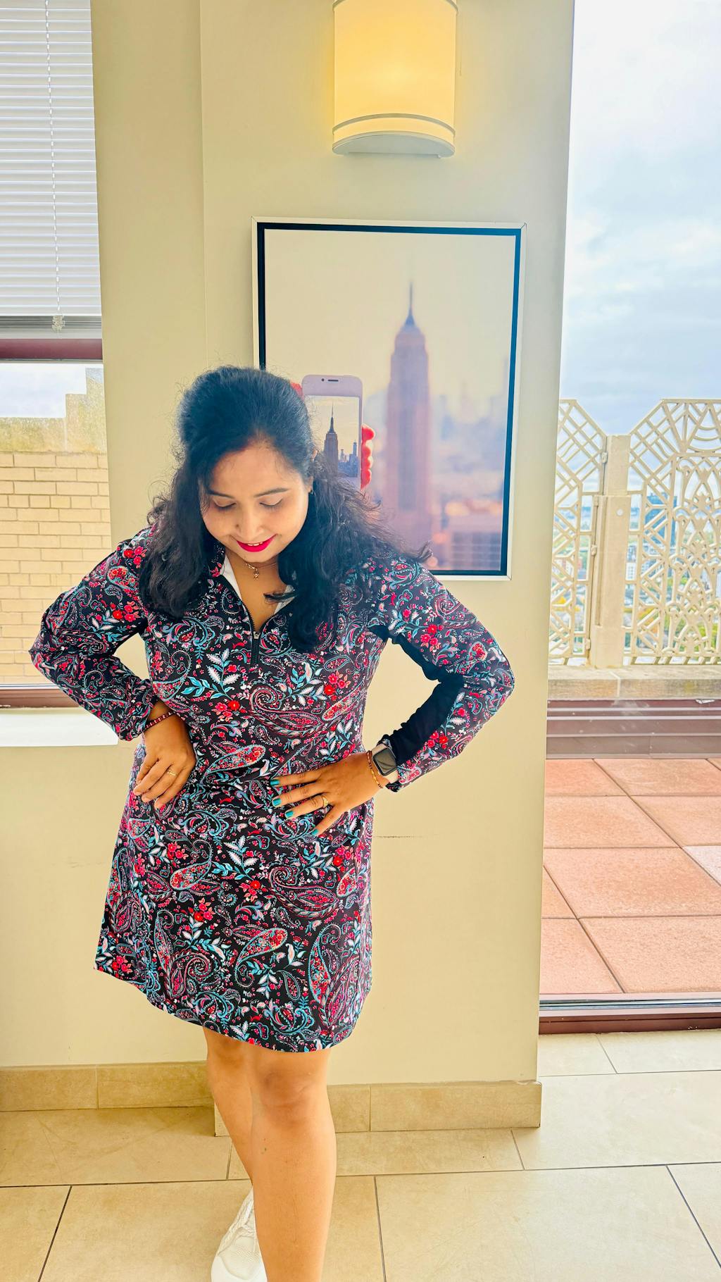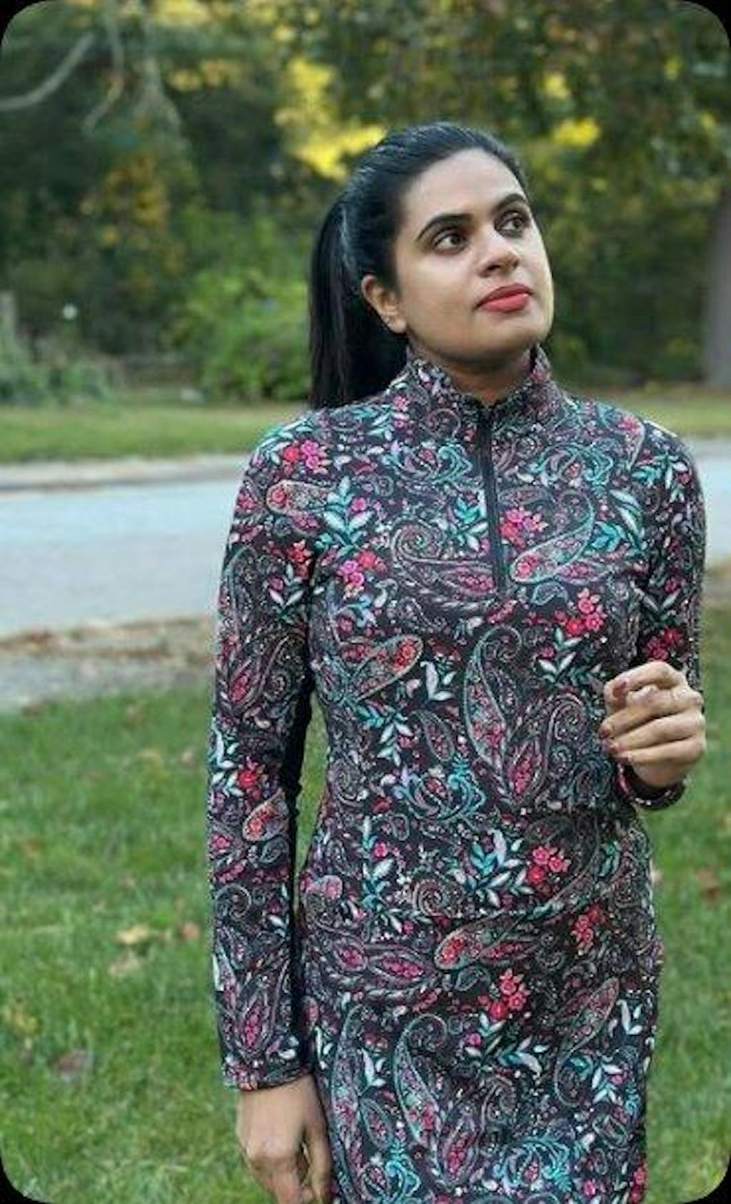 Bye-bye, sweaty arms! Elevate your game and style with our Black Paisley Quarter-Zip Long-Sleeve Dress! This stunning dress features a vibrant, eye-catching paisley print set against a sleek black backdrop. Crafted from soft, 4-way stretch fabric, it offers ultimate comfort and freedom of movement. Designed with half-breathable mesh sleeves, pockets, and built-in shorts, plus a stand collar with a quarter-zip.