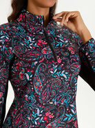 UPF50+ Breathable Black Paisley Stand-collar 34" Long-sleeve Dress
