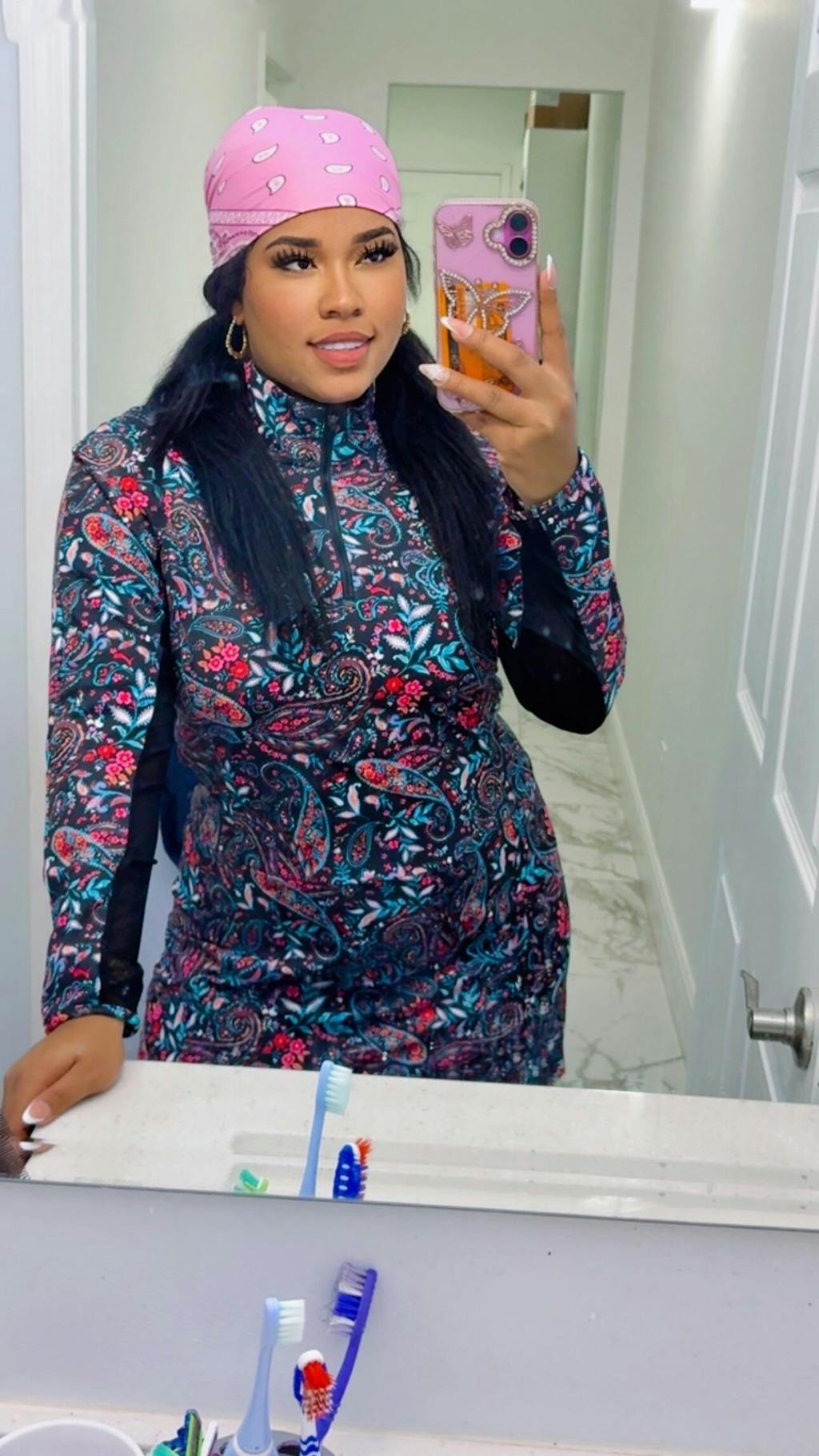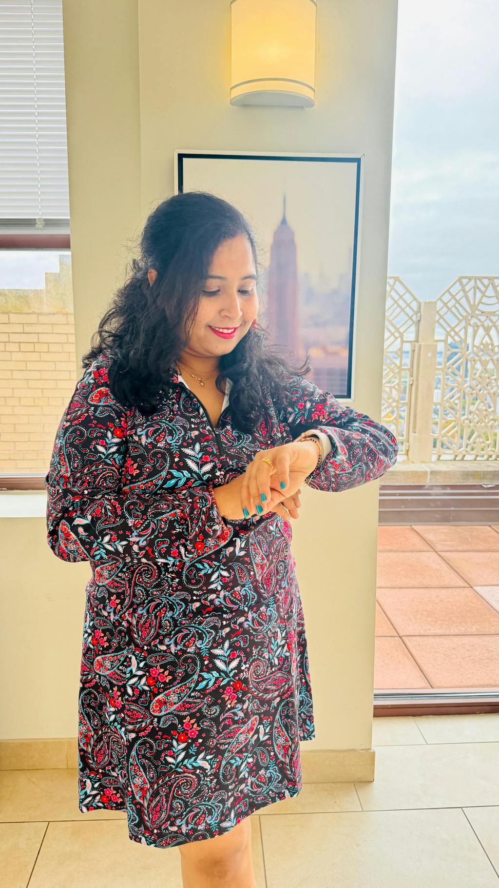 UPF50+ Breathable Black Paisley Stand-collar 34" Long-sleeve Dress with Shorts