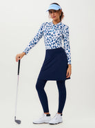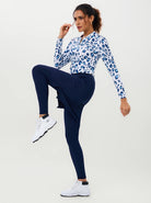 Blue Leopard Quarter-Zip Long-sleeve Golf Shirt for Women