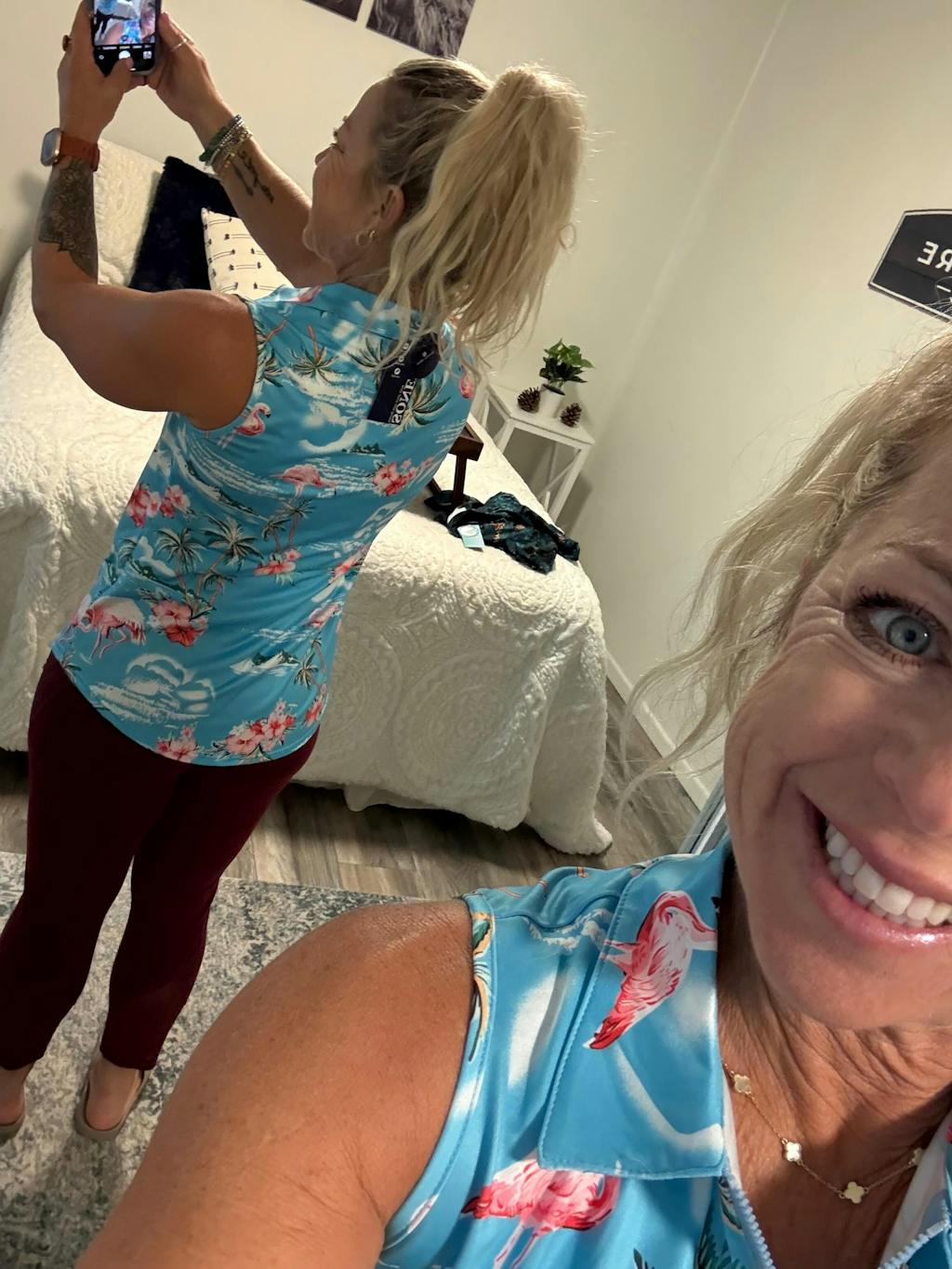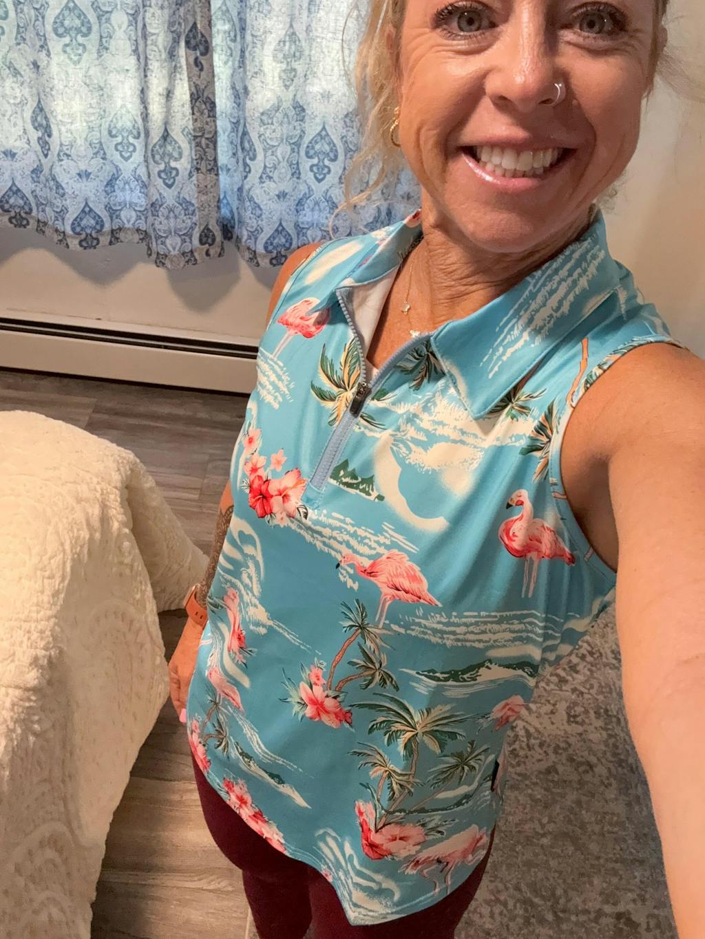 Elevate your golf game with our stylish and functional women's sleeveless polo. This vibrant flamingo design adds a touch of tropical flair to your athletic wardrobe. Crafted from premium moisture-wicking fabric, this polo is designed to keep you cool, dry, and comfortable throughout your round. The sleeveless style offers maximum breathability and range of motion, making it perfect for hot weather conditions.