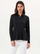 Basic Peplum Button-down Long-sleeve Polo Shirt