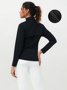 Black Full-zip Long-sleeve Athletic Jacket with Mesh Vent Inlay