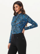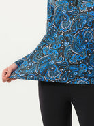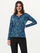 Blue and Black Paisley Quarter-zip Long-sleeve Shirt