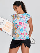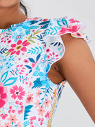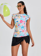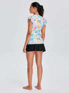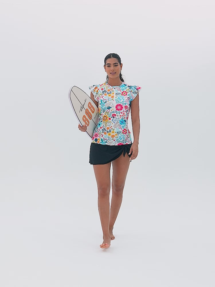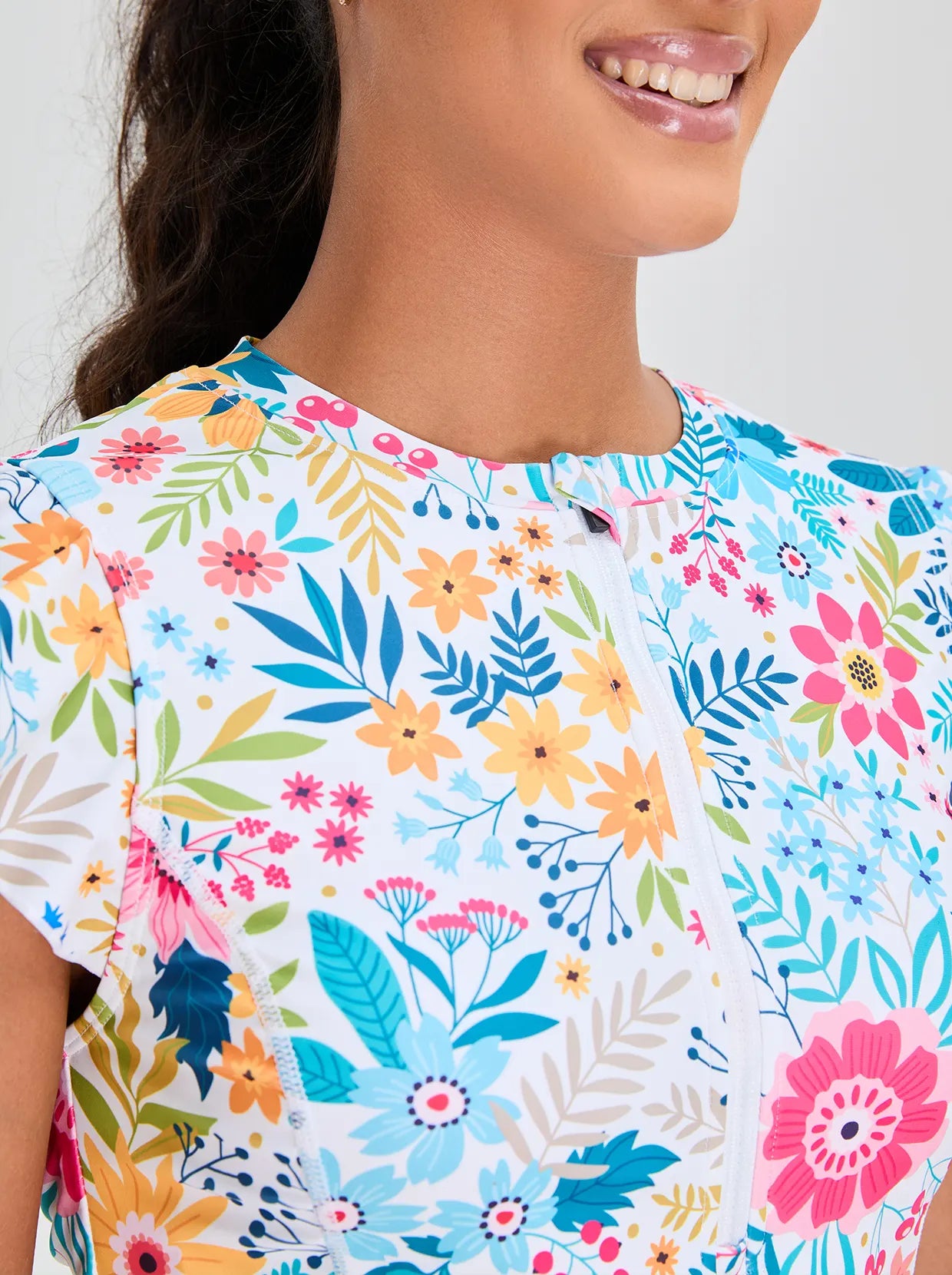 Daisy Flower Quarter-zip Ruffled Sleeveless Rash Guard for Women