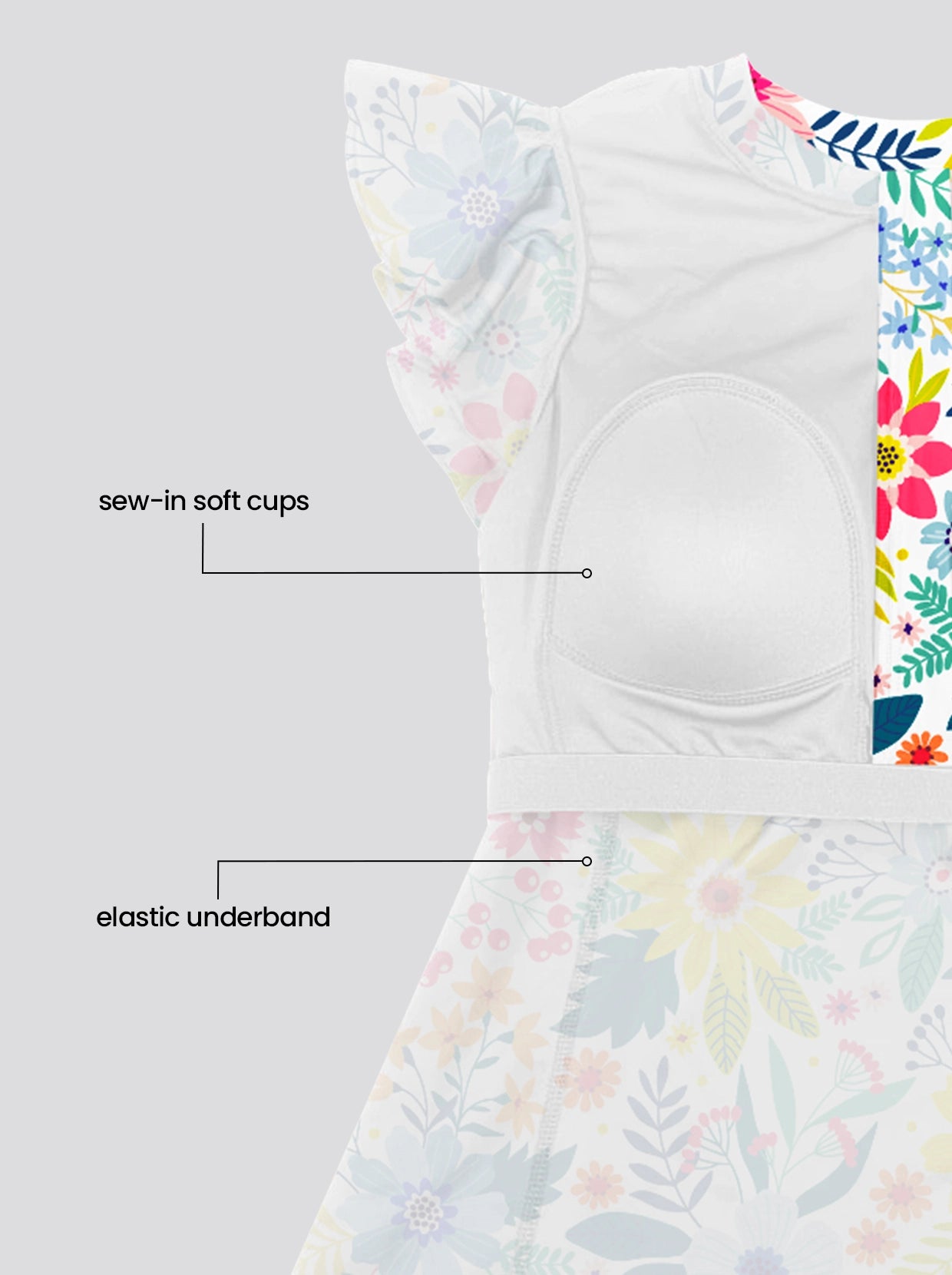 Highlights: UPF50+ (UVA/UVB), streamlined fit, built-in bra