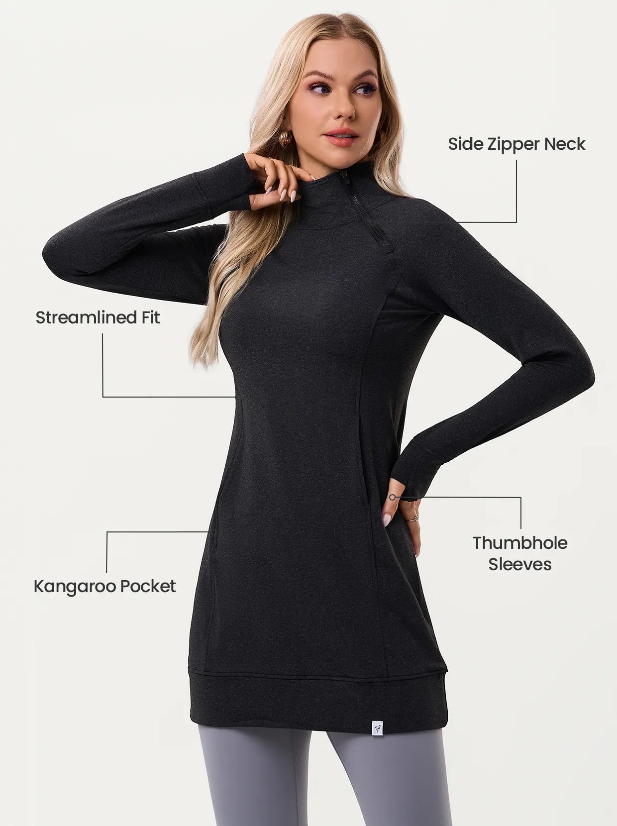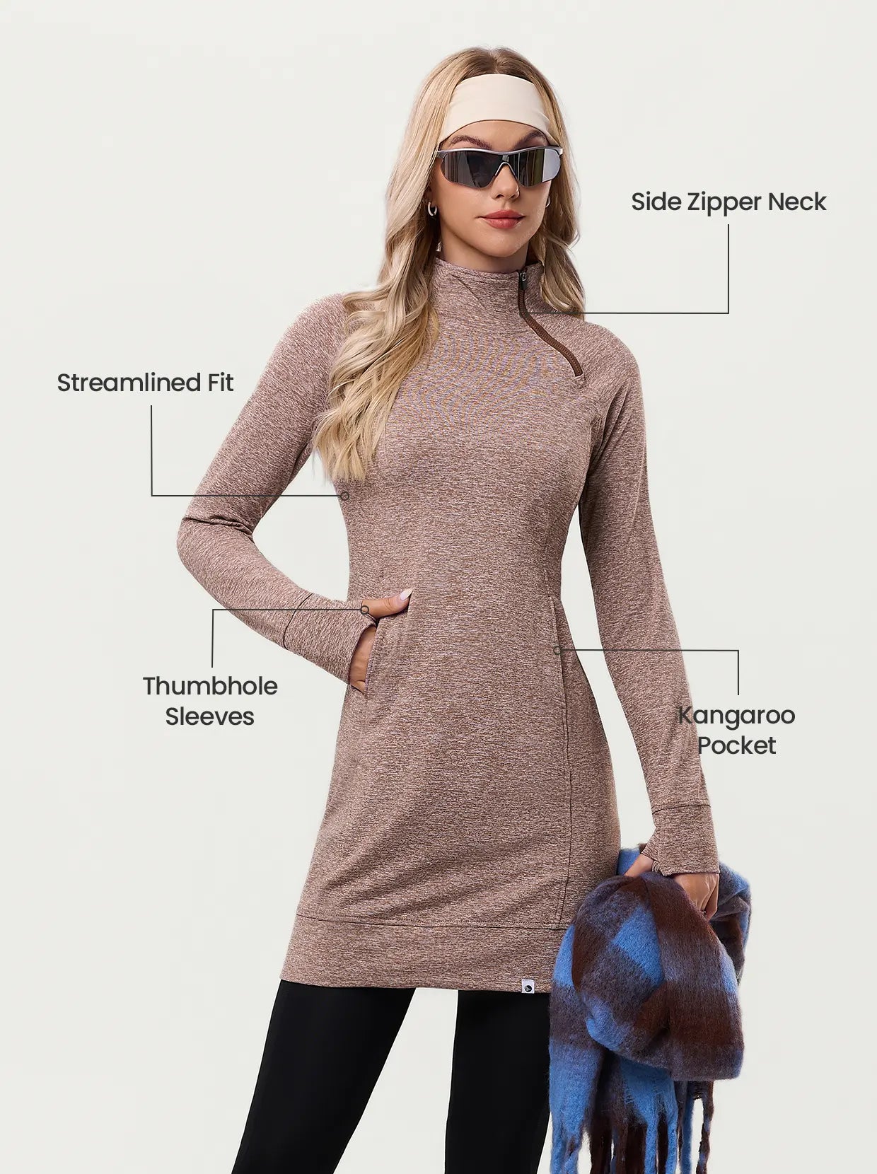 Enjoy your time outdoors! The fleece dress features soft fabric and fleece lining, keeping your body warm and comfortable. The side zipper design offers an added cover for the neck, and the stretchy material provides great freedom outdoors. Thumb holes ensure the sleeves stay securely in place, preventing any unwanted movement during exercises.