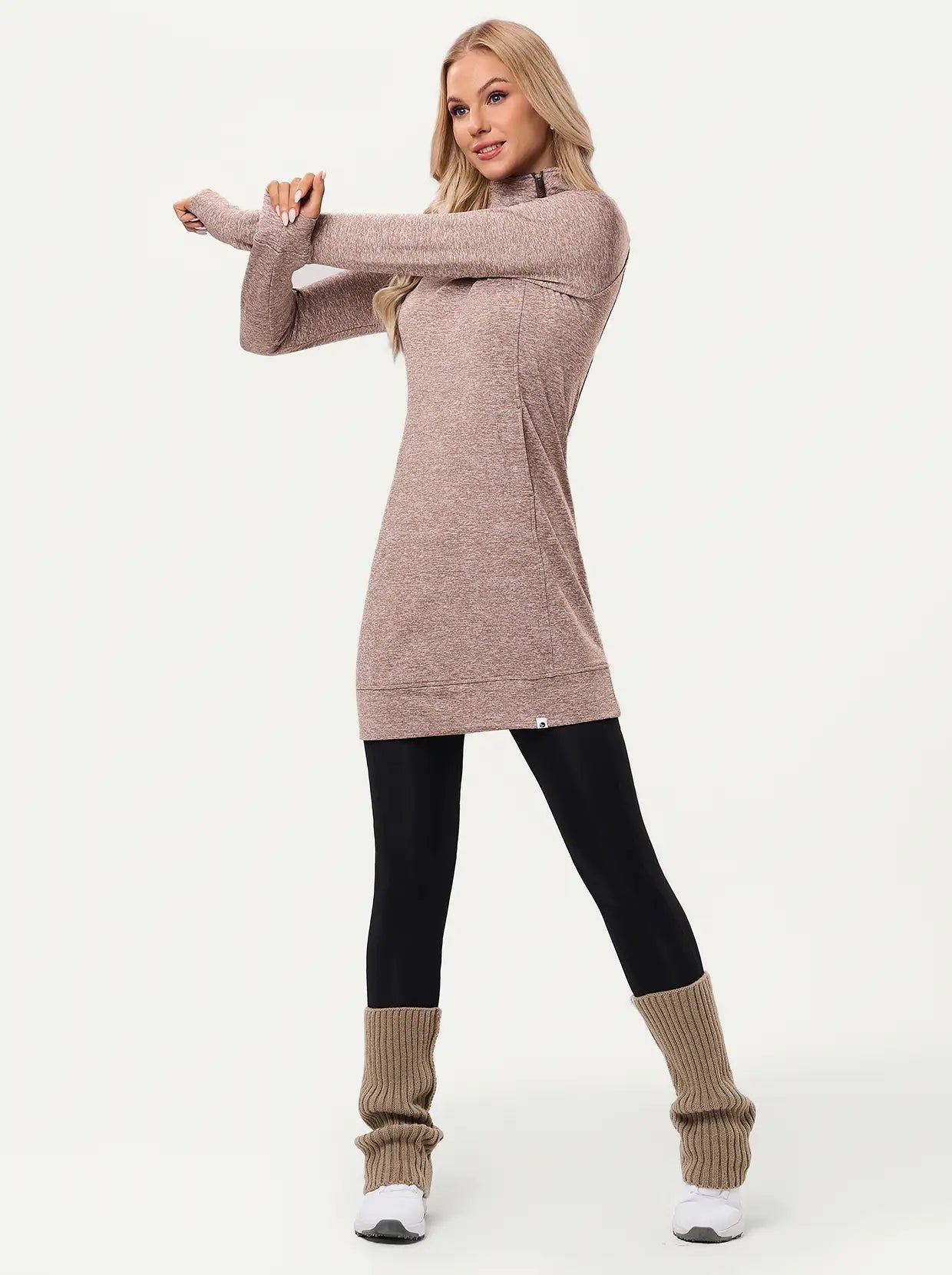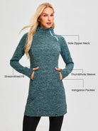 Side-zip 35" Mock Neck Long-sleeve Fleece Dress for Women