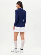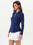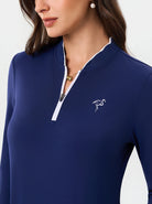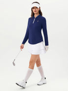 Navy Ruffled Quarter-zip Long-sleeve Golf Shirt