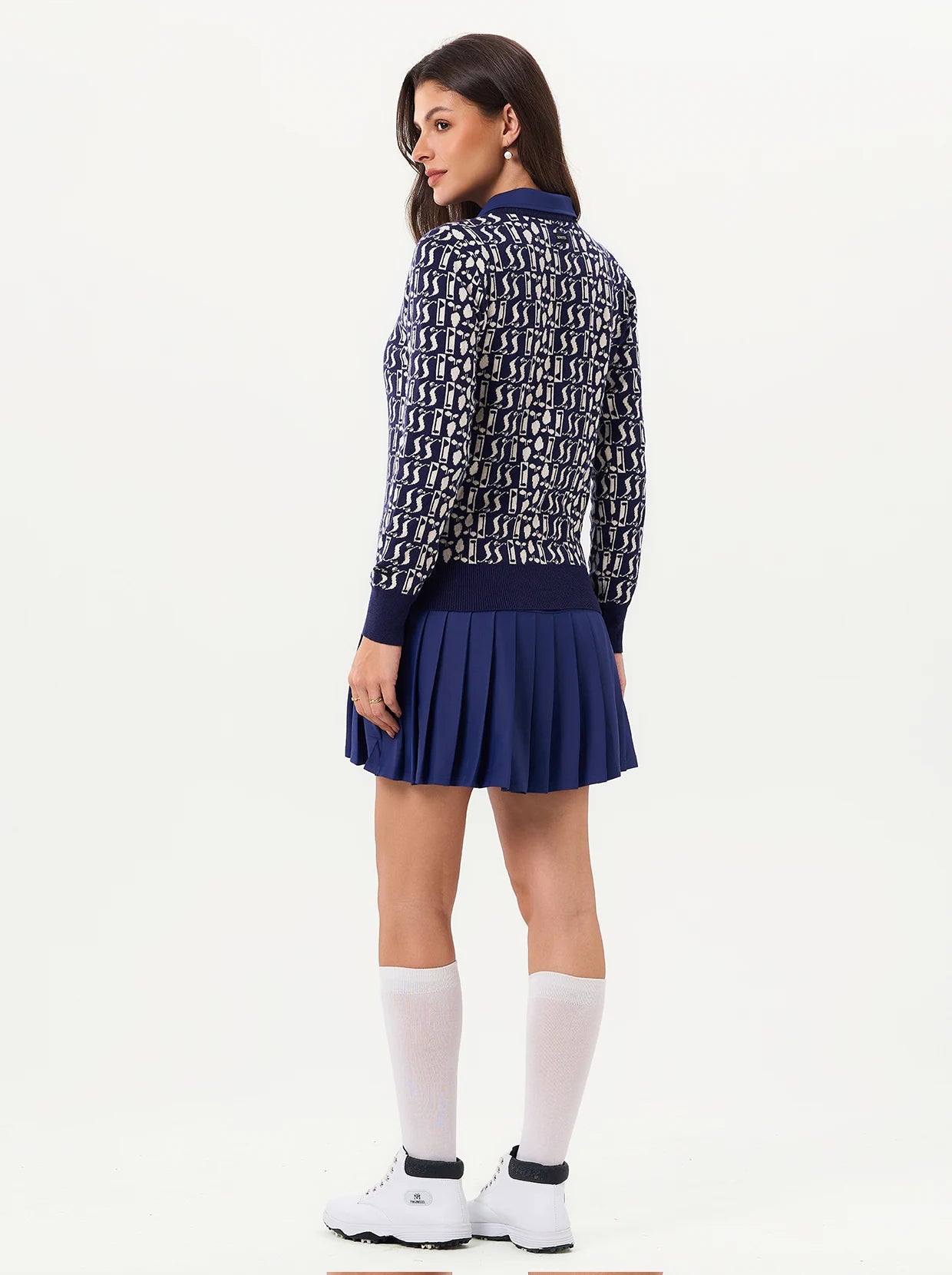 Navy Geometric Soft-Knit Crew-neck Golf Sweater