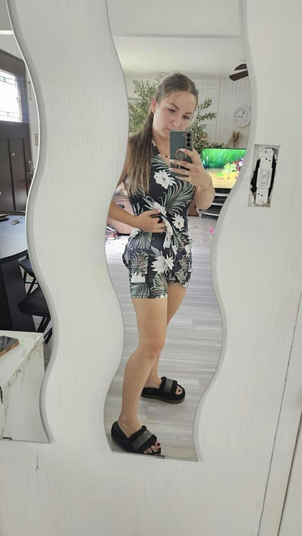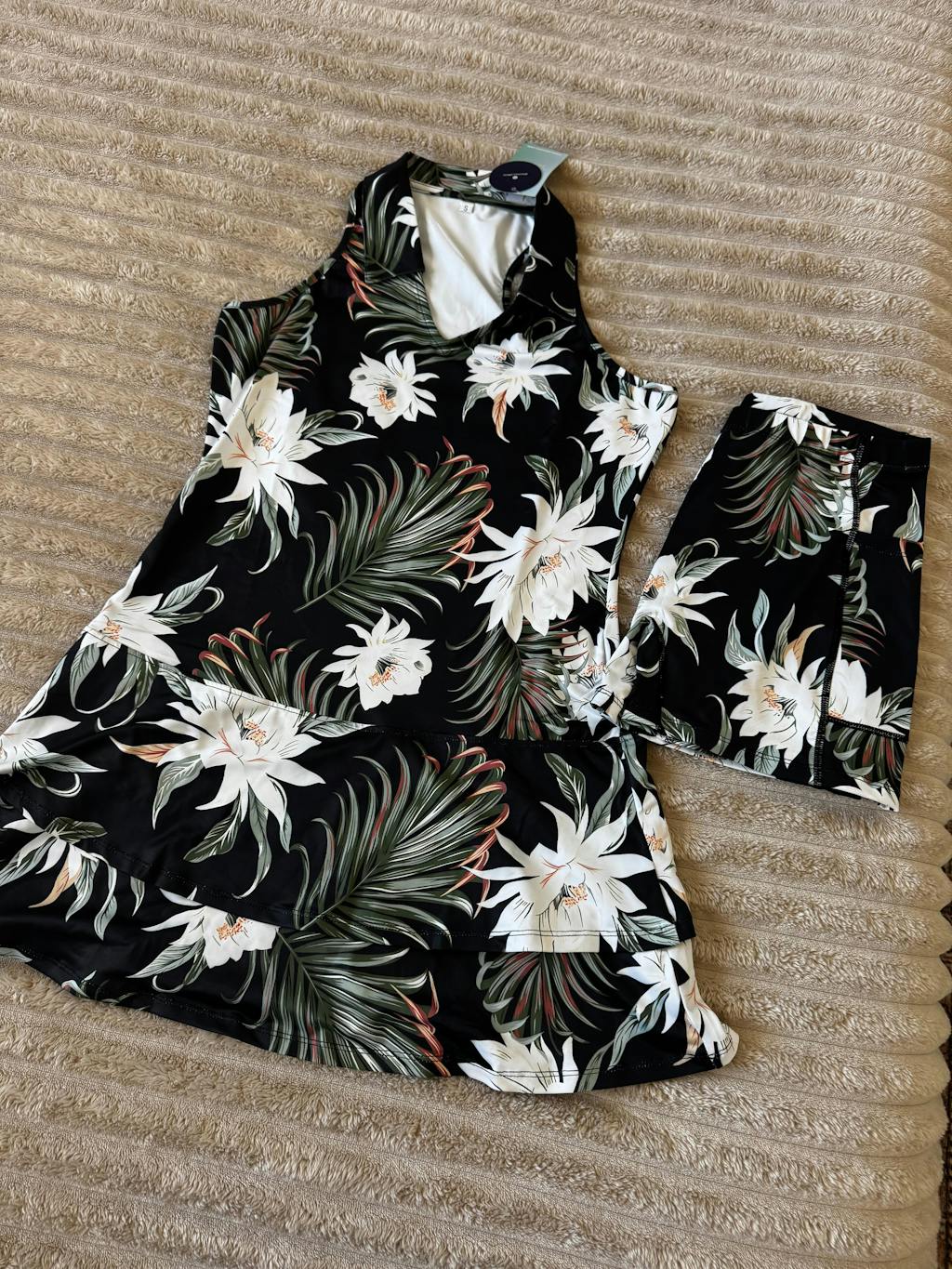 32" White Floral Racerback Sleeveless Dress with Shorts