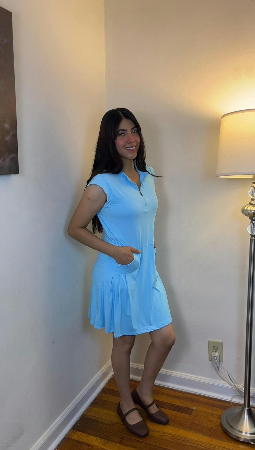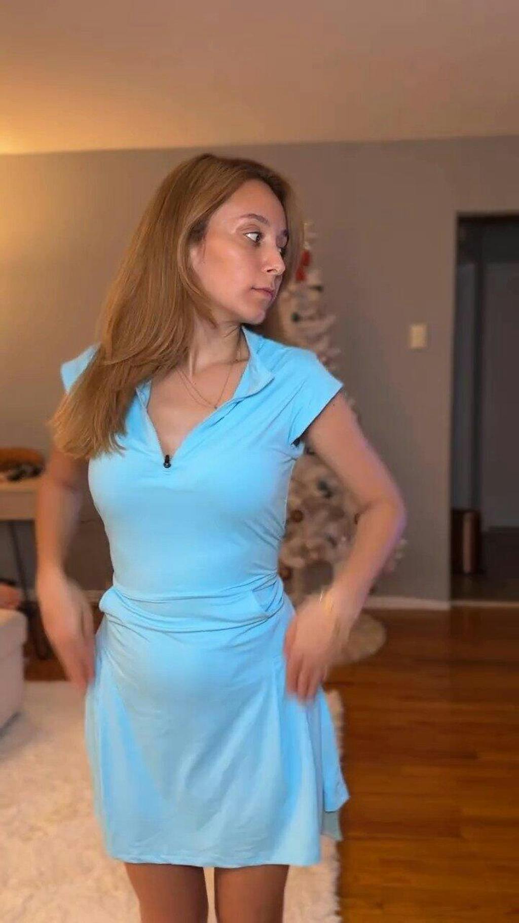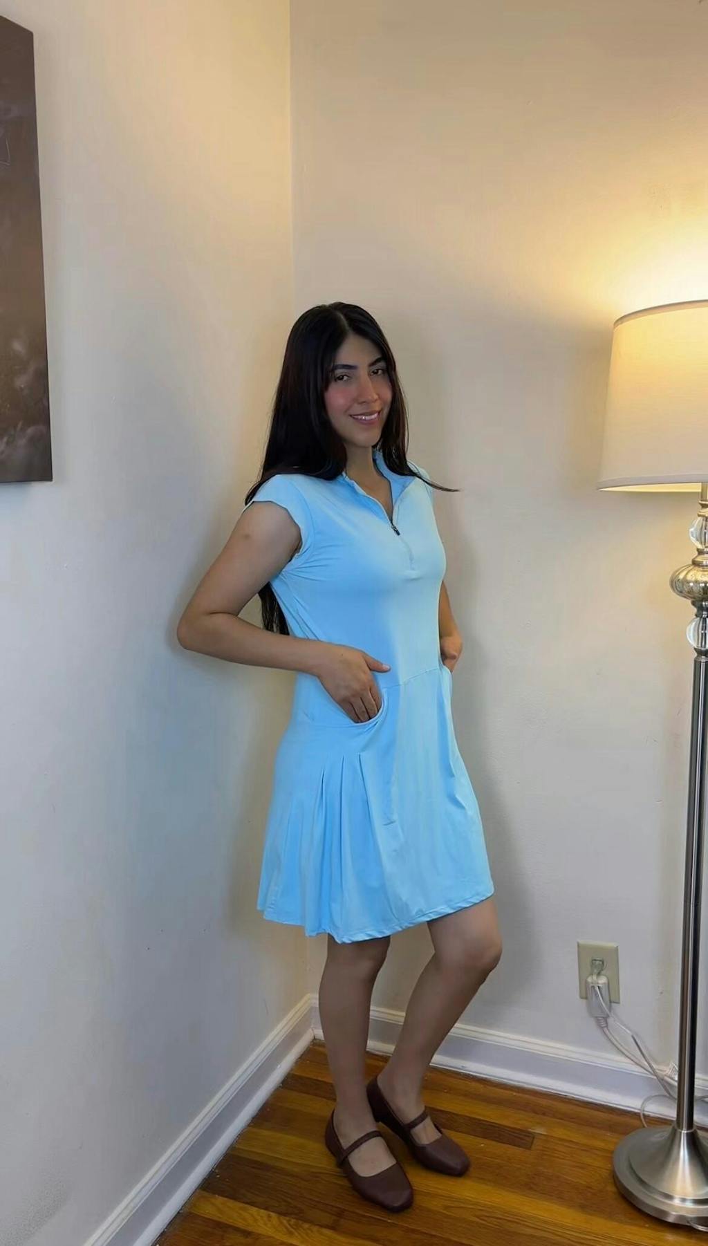 LuxeCool™ Blue 34" Quarter-zip Sleeveless Dress with Pockets and Shorts