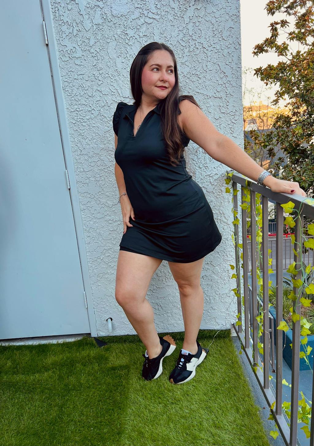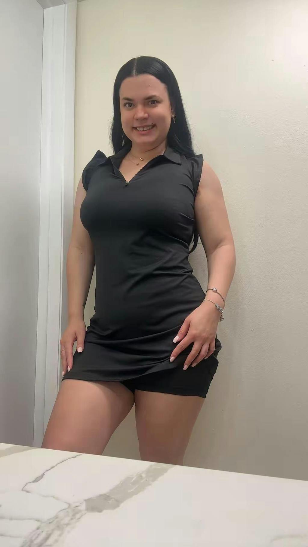 Basic 34" Quarter-zip Ruffled Sleeveless Dresses with Shorts