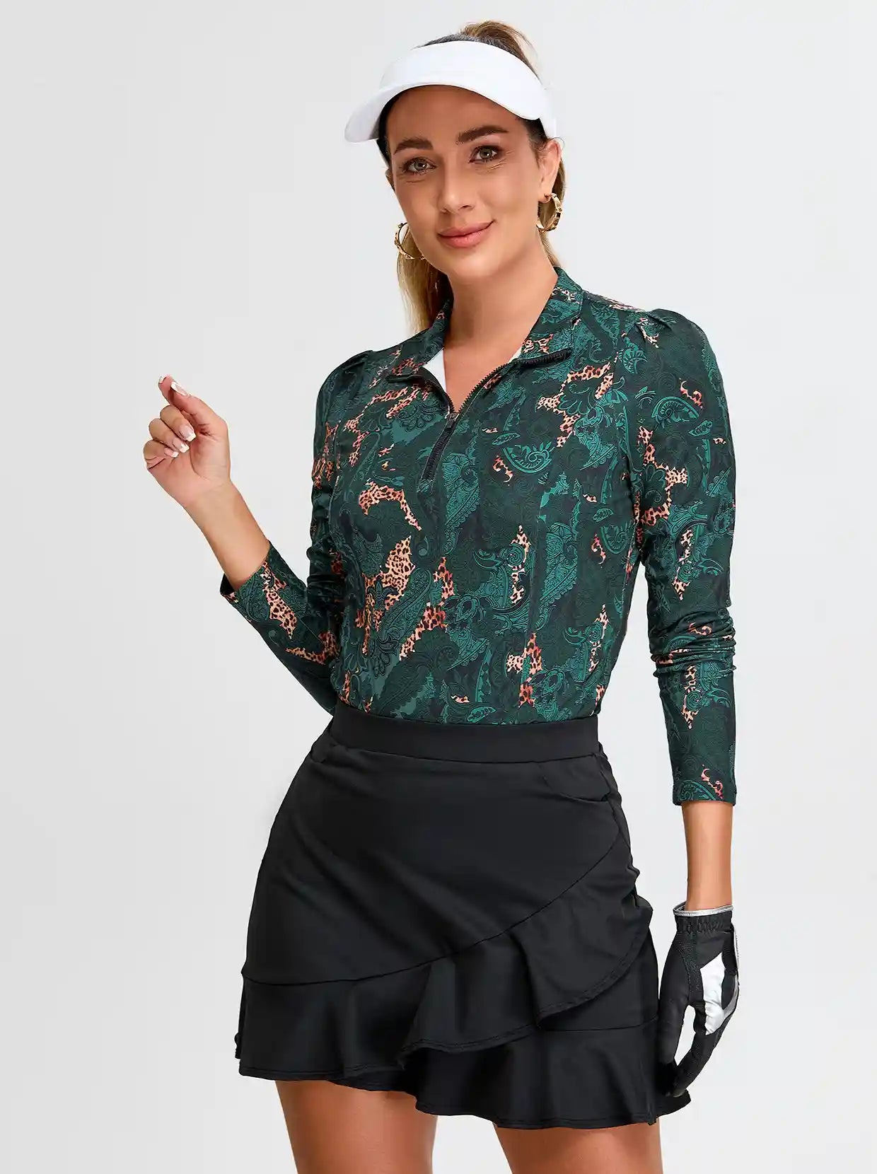 Elevate your athletic style with our Green Paisley Long-sleeve Golf Polo Shirt. The unique green paisley design adds a touch of elegance to your workout wardrobe. The quarter-zip feature allows for adjustable ventilation, keeping you comfortable during any activity. Whether you're hitting the gym or going for a run, stay stylish and comfortable.