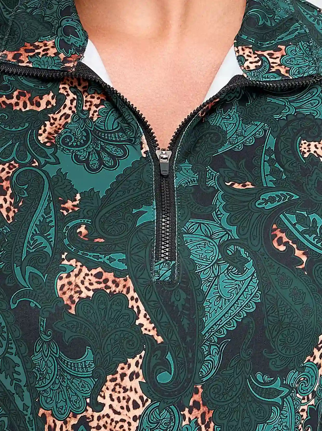 Green Paisley Quarter-zip Long-sleeve Polo Shirt