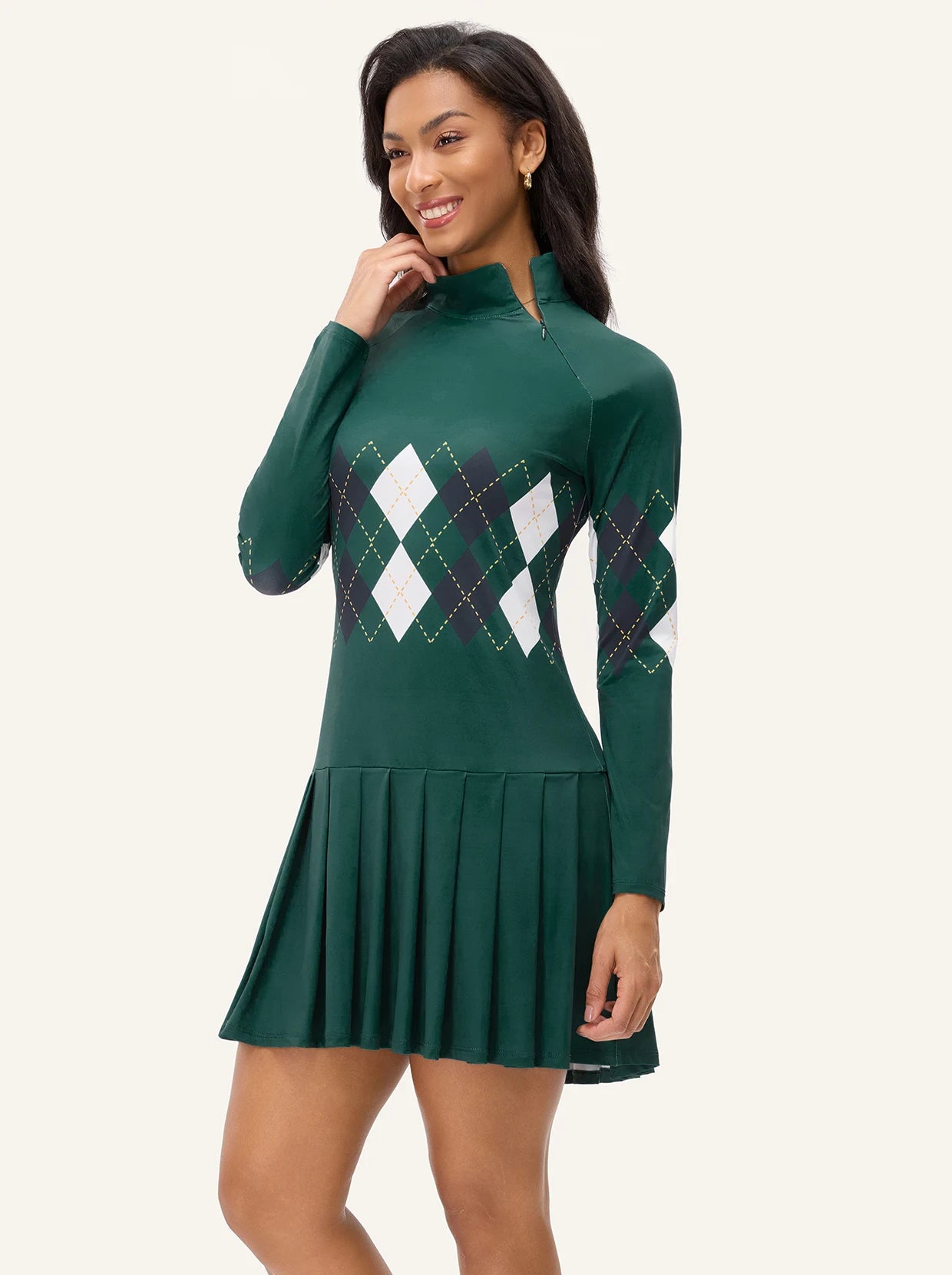 From our Fall for Classics Collection, our long-sleeve dress features a pleated hem that creates a beautifully flowy cut. Crafted from a lightweight, 4-way stretch fabric with built-in shorts, this dress offers complete ease of movement and confident coverage, making it perfect for Smart, Seasonal Dressing.